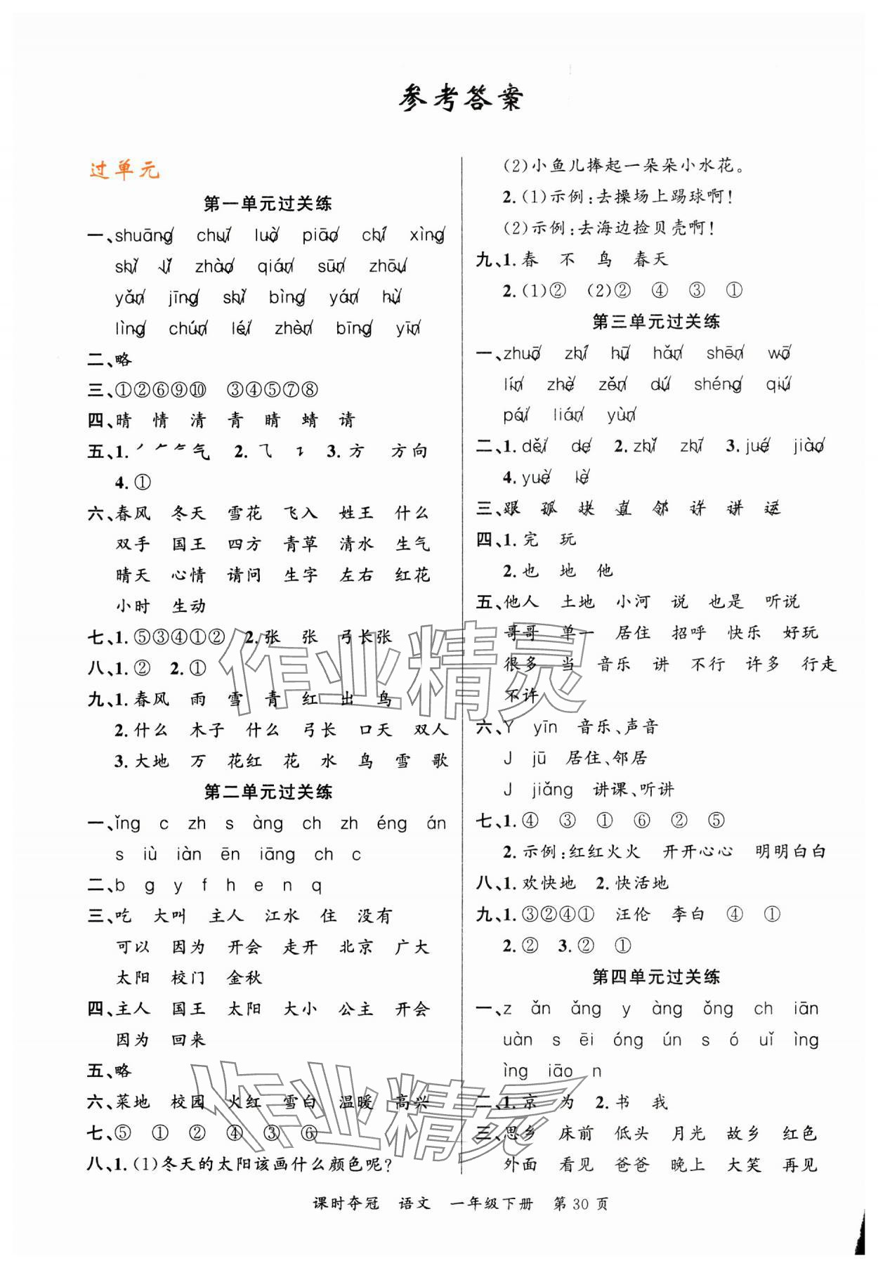 注:目前有些书本章节名称可能整理的还不是很完善,但都是按照顺序排列的,请同学们按照顺序仔细查找。练习册 2024年课时夺冠一年级语文下册人教版 答案主要是用来给同学们做完题方便对答案用的,请勿直接抄袭。