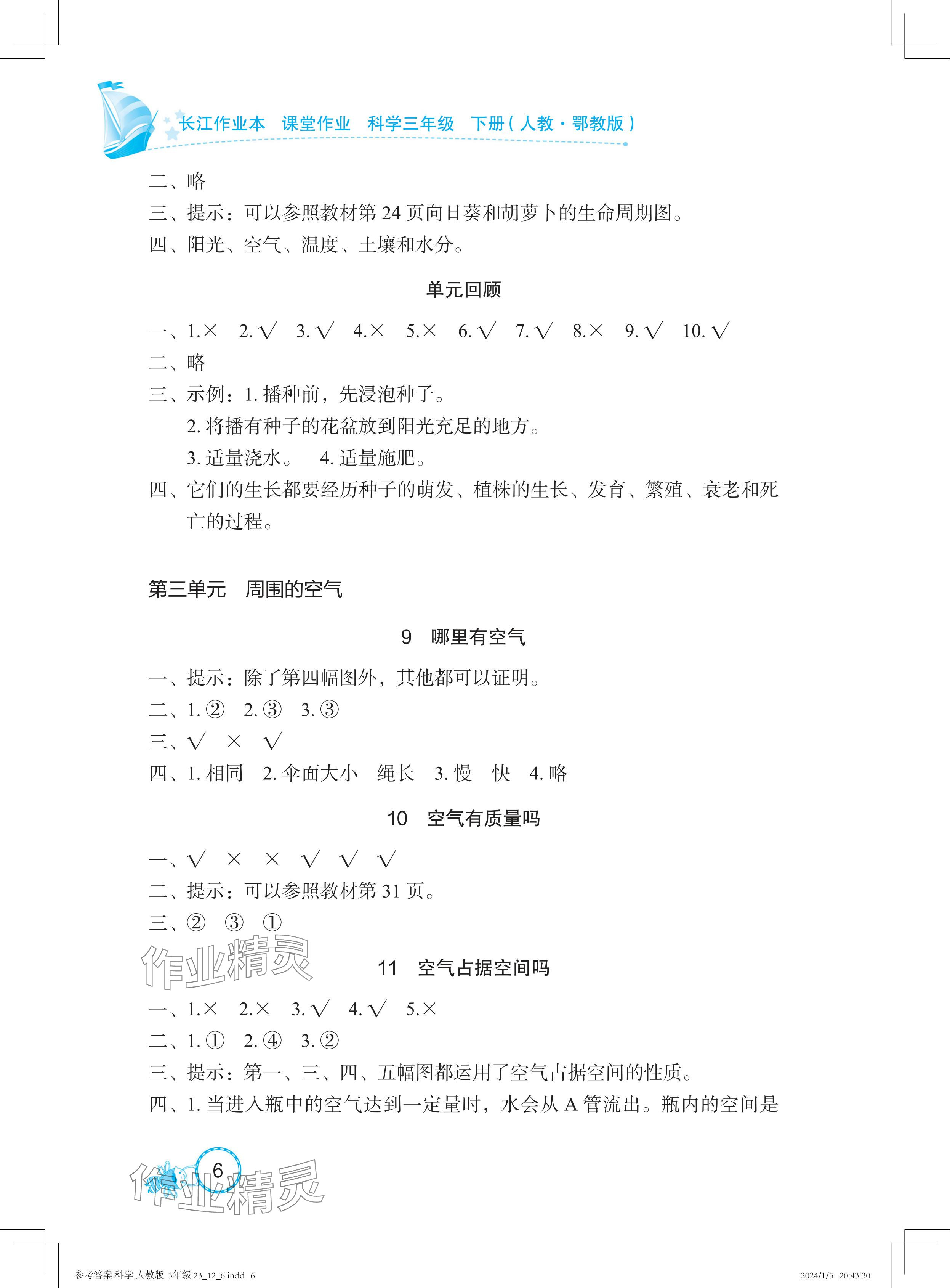 注:目前有些书本章节名称可能整理的还不是很完善,但都是按照顺序排列的,请同学们按照顺序仔细查找。练习册 2024年长江作业本课堂作业三年级科学下册鄂教版 答案主要是用来给同学们做完题方便对答案用的,请勿直接抄袭。