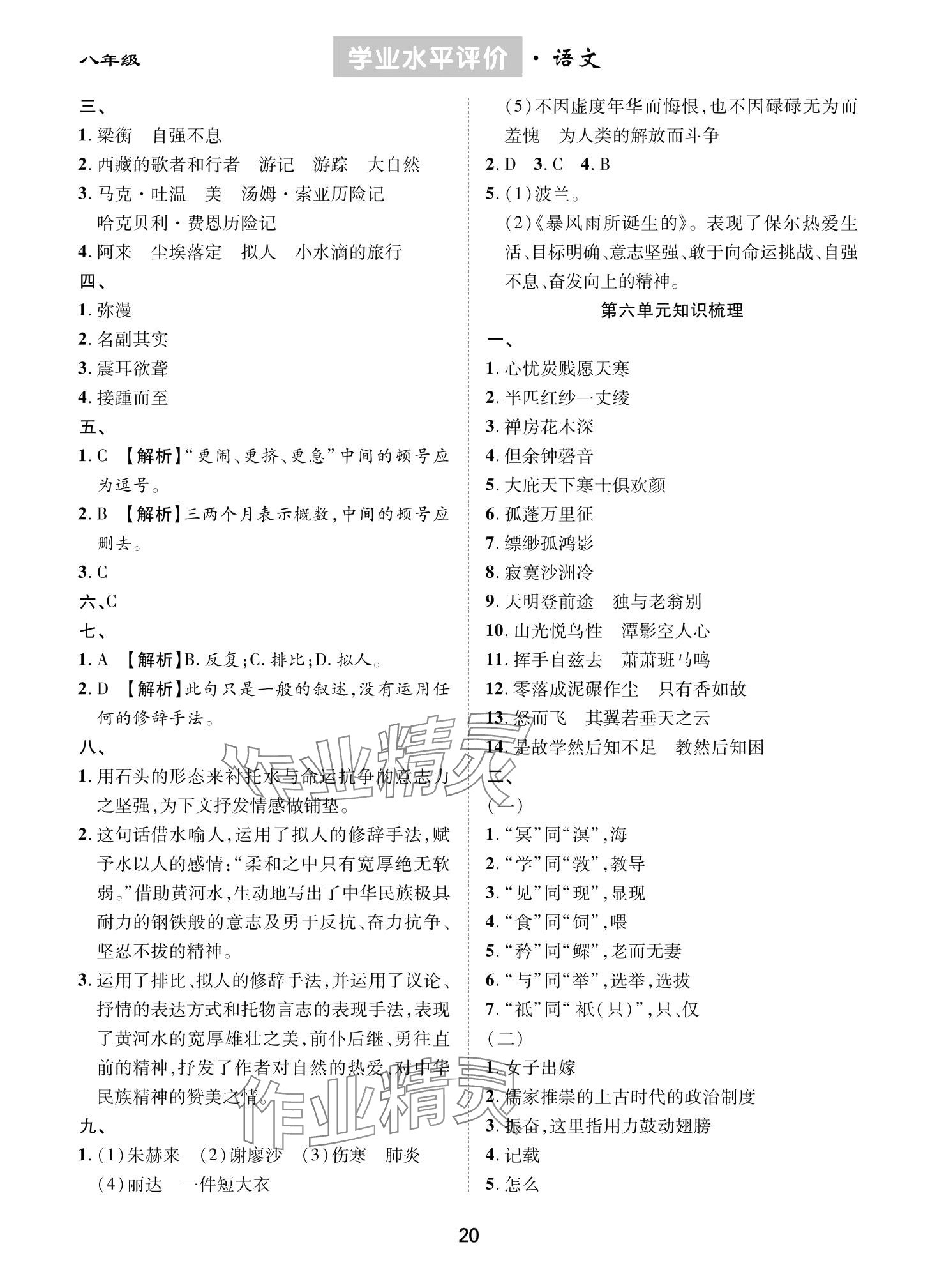 注:目前有些书本章节名称可能整理的还不是很完善,但都是按照顺序排列的,请同学们按照顺序仔细查找。练习册 2024年学业水平评价同步检测卷八年级语文下册人教版 答案主要是用来给同学们做完题方便对答案用的,请勿直接抄袭。