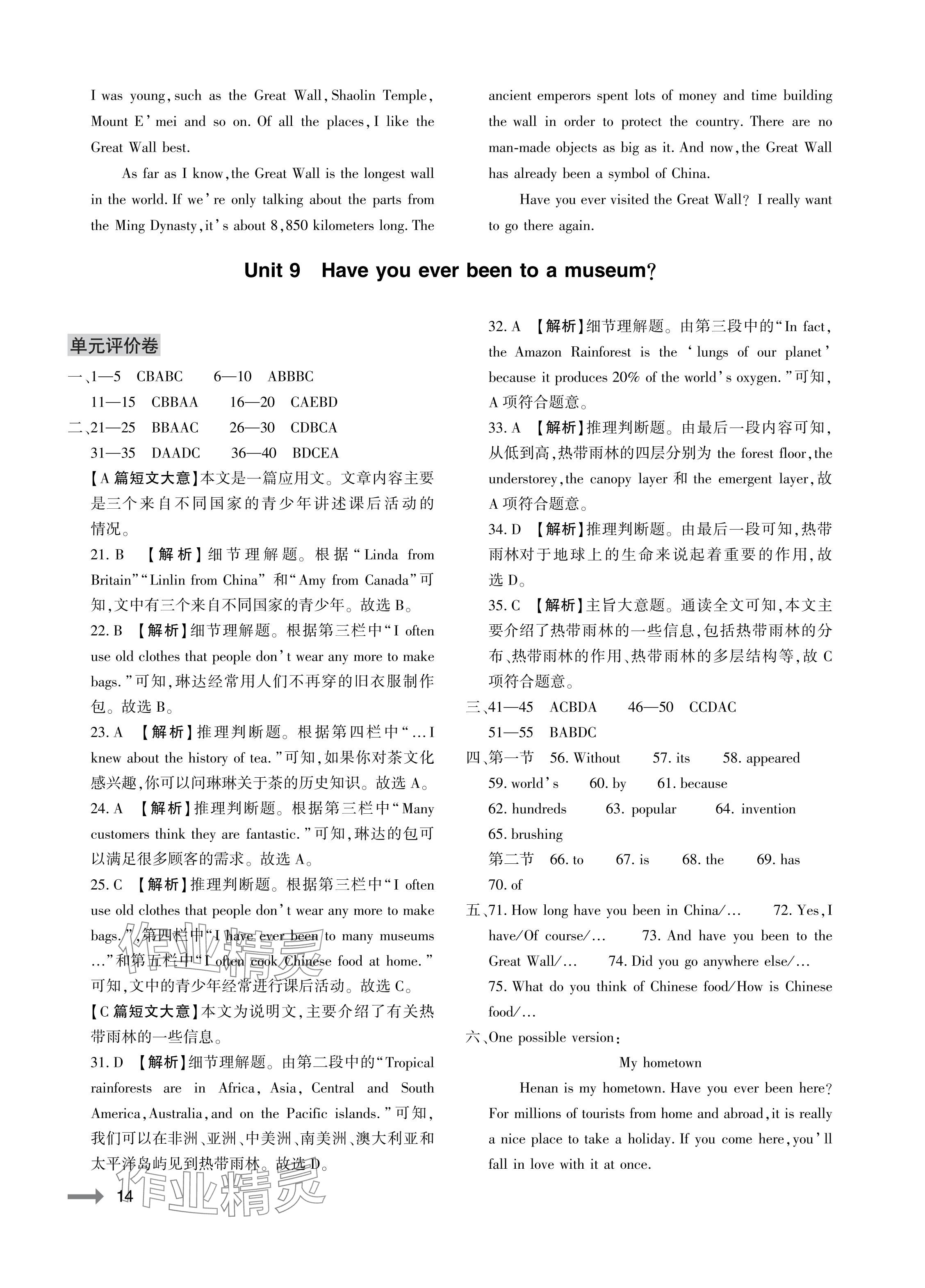 注:目前有些书本章节名称可能整理的还不是很完善,但都是按照顺序排列的,请同学们按照顺序仔细查找。练习册 2024年节节高大象出版社八年级英语下册人教版 答案主要是用来给同学们做完题方便对答案用的,请勿直接抄袭。