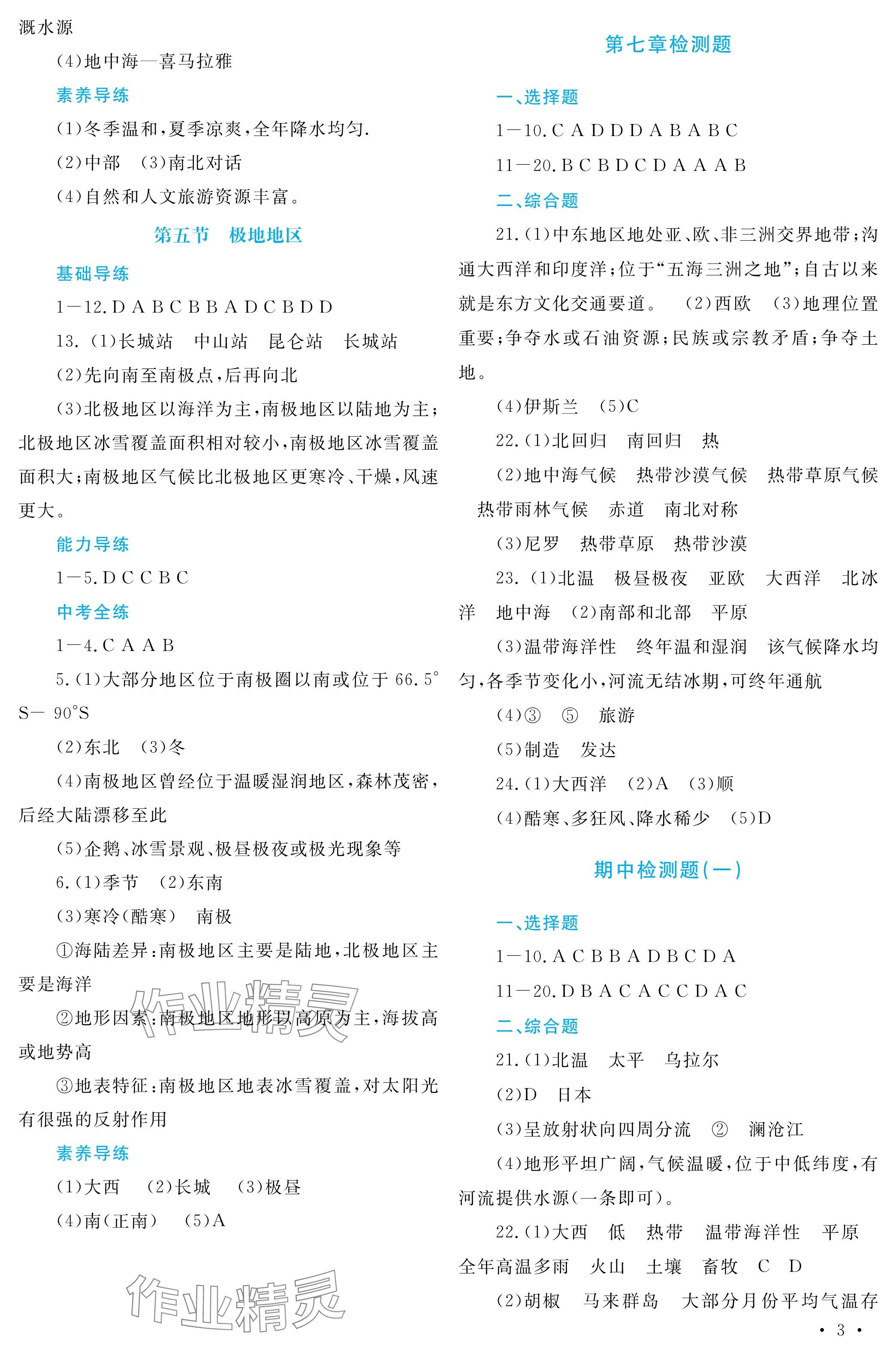 注:目前有些书本章节名称可能整理的还不是很完善,但都是按照顺序排列的,请同学们按照顺序仔细查找。练习册 2024年学习检测七年级地理下册商务星球版 答案主要是用来给同学们做完题方便对答案用的,请勿直接抄袭。