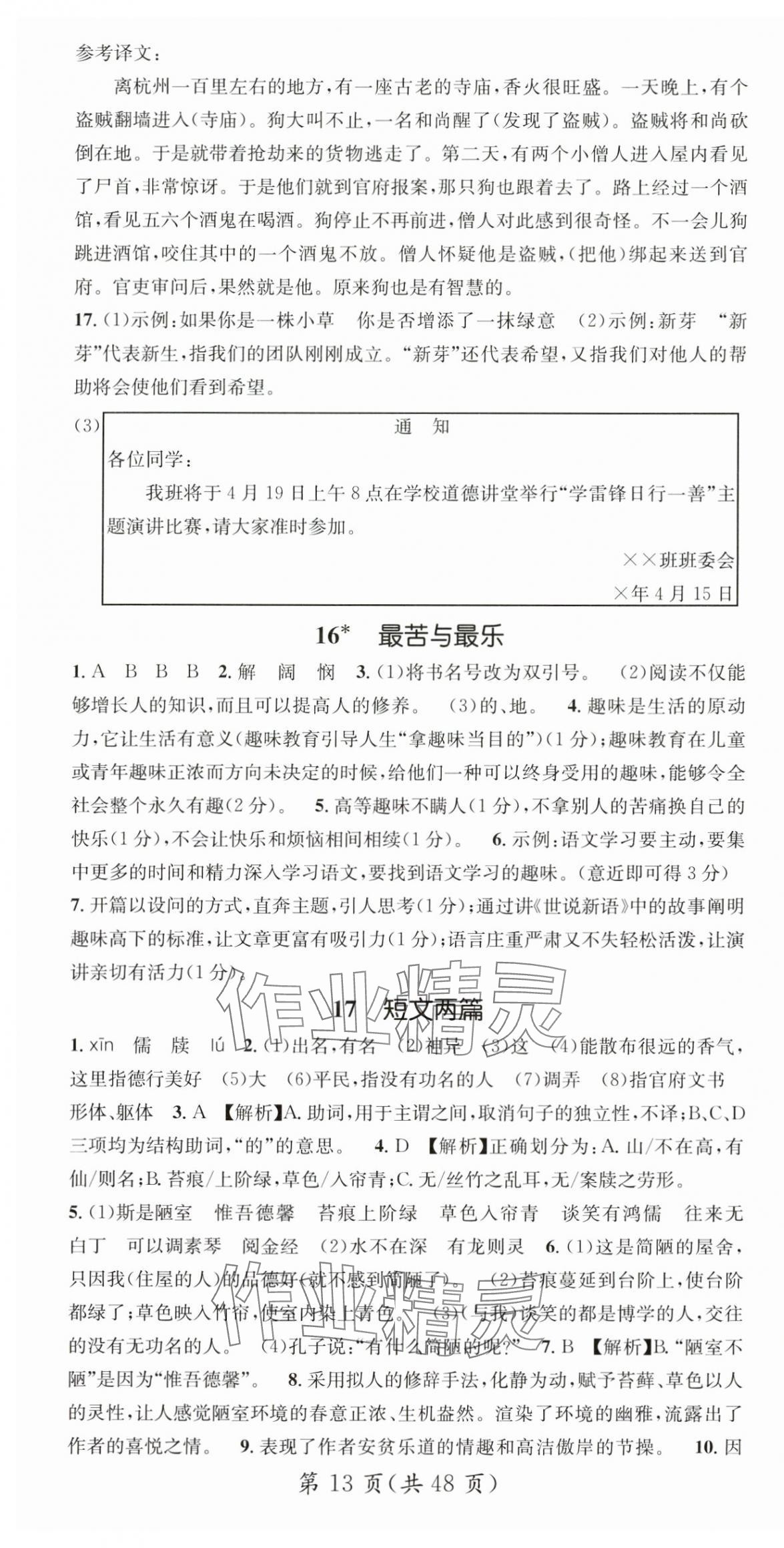注:目前有些书本章节名称可能整理的还不是很完善,但都是按照顺序排列的,请同学们按照顺序仔细查找。练习册 2024年名师测控七年级语文下册人教版陕西专版 答案主要是用来给同学们做完题方便对答案用的,请勿直接抄袭。