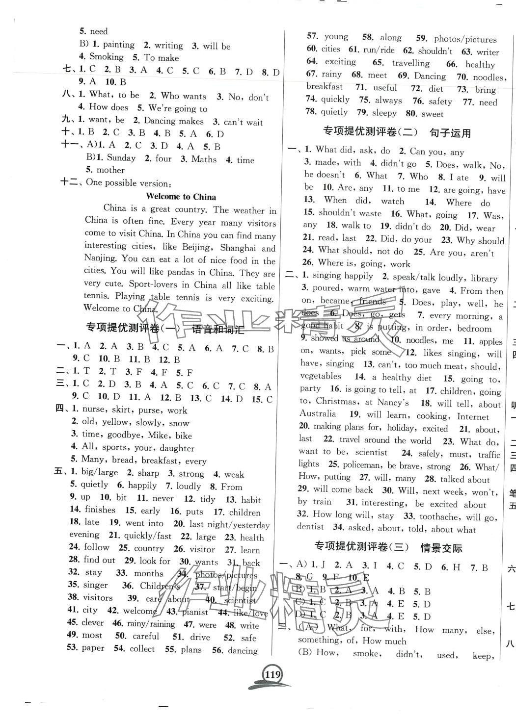 注:目前有些书本章节名称可能整理的还不是很完善,但都是按照顺序排列的,请同学们按照顺序仔细查找。练习册 2024年直击考点冲刺100分六年级英语下册译林版 答案主要是用来给同学们做完题方便对答案用的,请勿直接抄袭。
