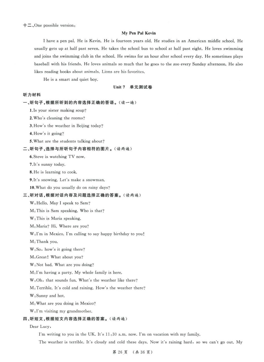 注:目前有些书本章节名称可能整理的还不是很完善,但都是按照顺序排列的,请同学们按照顺序仔细查找。练习册 2024年我的作业七年级英语下册人教版 答案主要是用来给同学们做完题方便对答案用的,请勿直接抄袭。