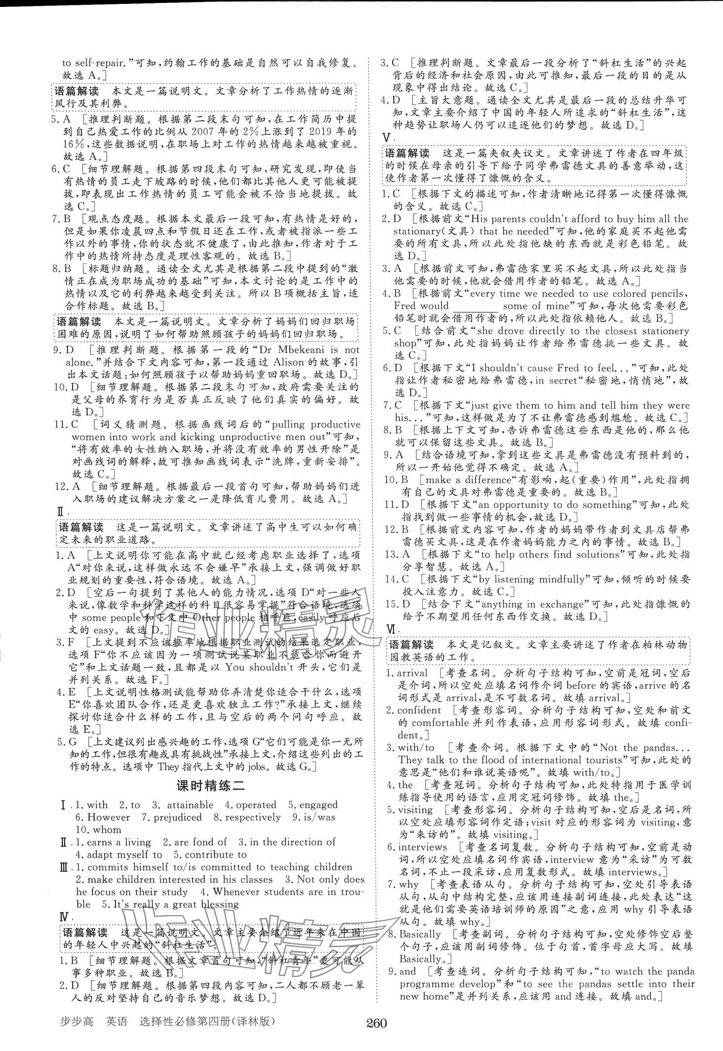 注:目前有些书本章节名称可能整理的还不是很完善,但都是按照顺序排列的,请同学们按照顺序仔细查找。练习册 2024年步步高学习笔记高中英语选择性必修第四册译林版 答案主要是用来给同学们做完题方便对答案用的,请勿直接抄袭。