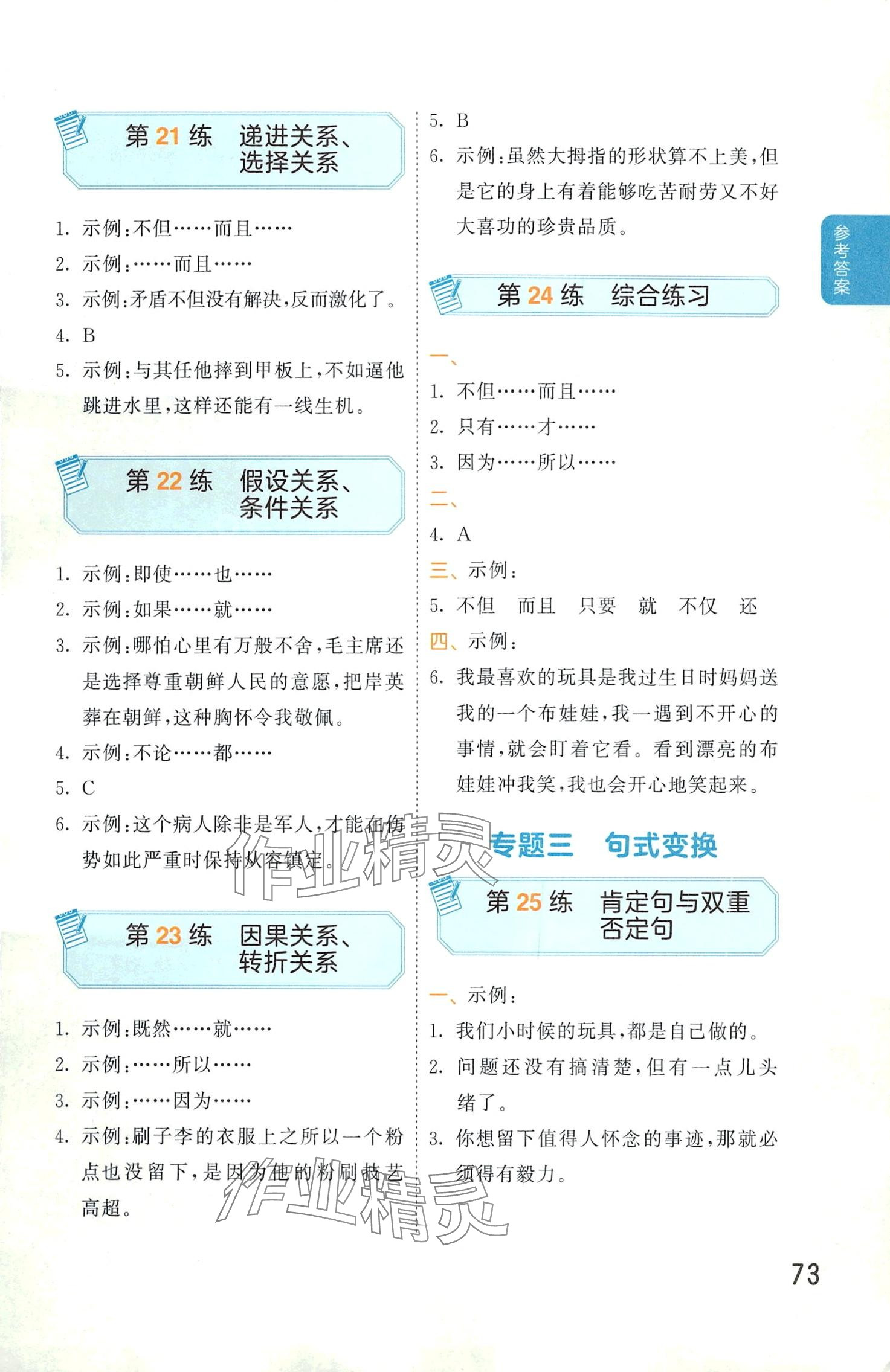 注:目前有些书本章节名称可能整理的还不是很完善,但都是按照顺序排列的,请同学们按照顺序仔细查找。练习册 2024年句式训练大全五年级语文下册人教版 答案主要是用来给同学们做完题方便对答案用的,请勿直接抄袭。