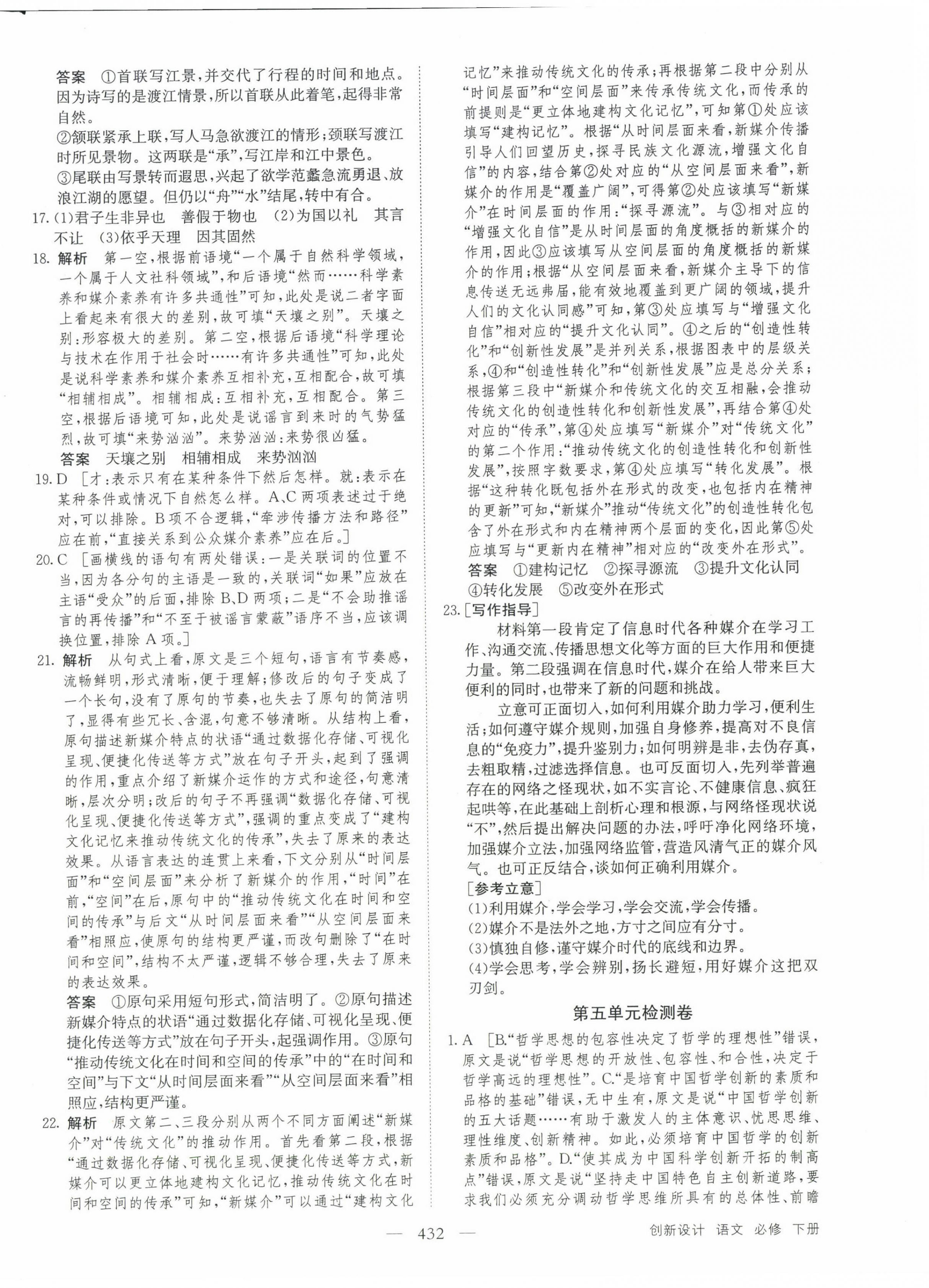 注:目前有些书本章节名称可能整理的还不是很完善,但都是按照顺序排列的,请同学们按照顺序仔细查找。练习册 2024年创新设计高中语文必修下册 答案主要是用来给同学们做完题方便对答案用的,请勿直接抄袭。
