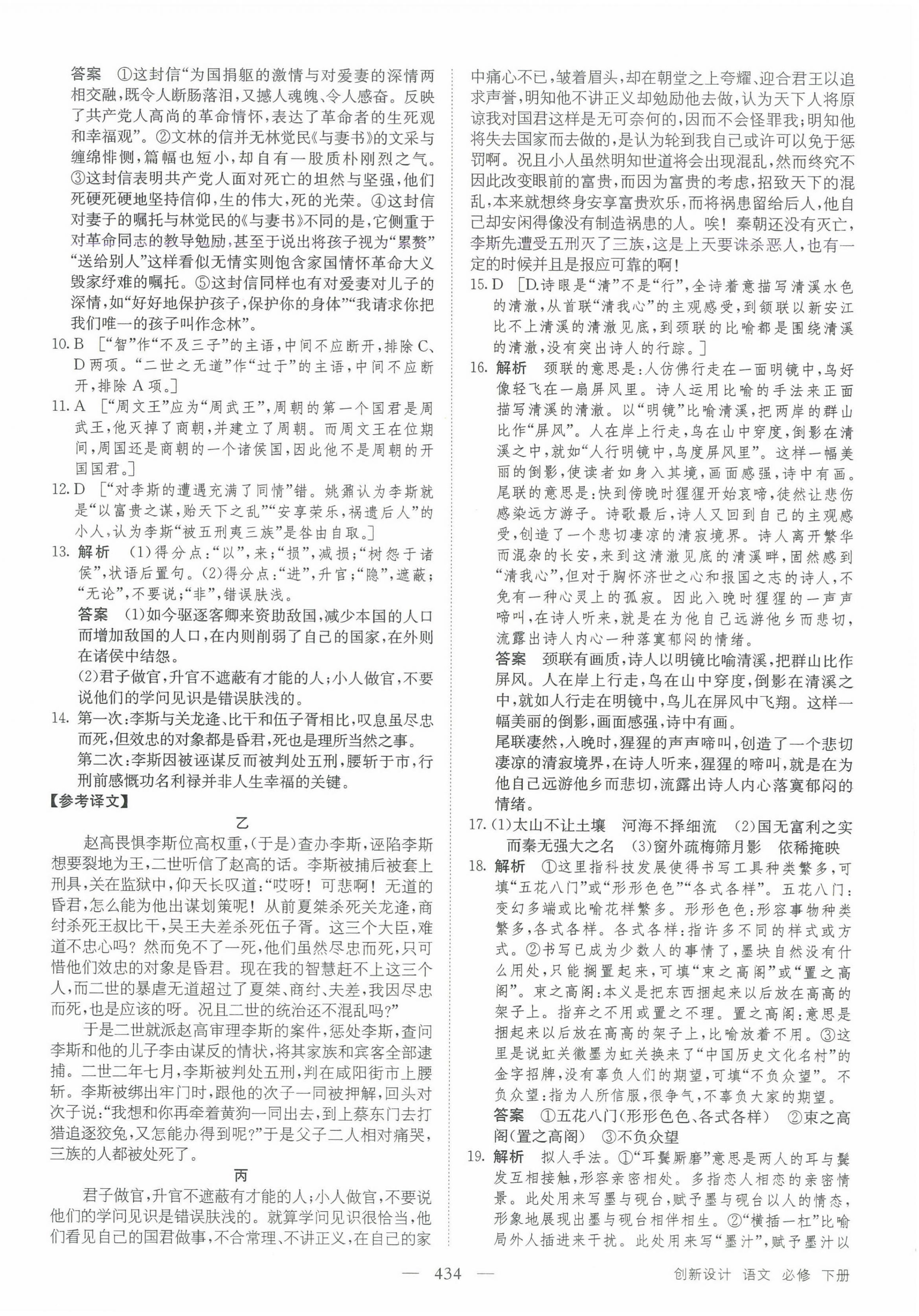 注:目前有些书本章节名称可能整理的还不是很完善,但都是按照顺序排列的,请同学们按照顺序仔细查找。练习册 2024年创新设计高中语文必修下册 答案主要是用来给同学们做完题方便对答案用的,请勿直接抄袭。