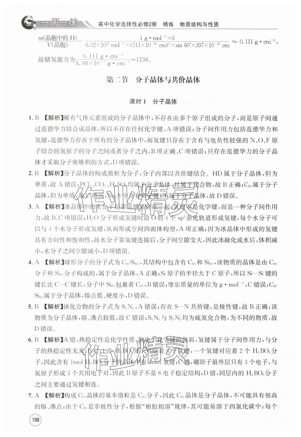 注:目前有些书本章节名称可能整理的还不是很完善,但都是按照顺序排列的,请同学们按照顺序仔细查找。练习册 2024年一周一练高中化学选择性必修第二册人教版 答案主要是用来给同学们做完题方便对答案用的,请勿直接抄袭。