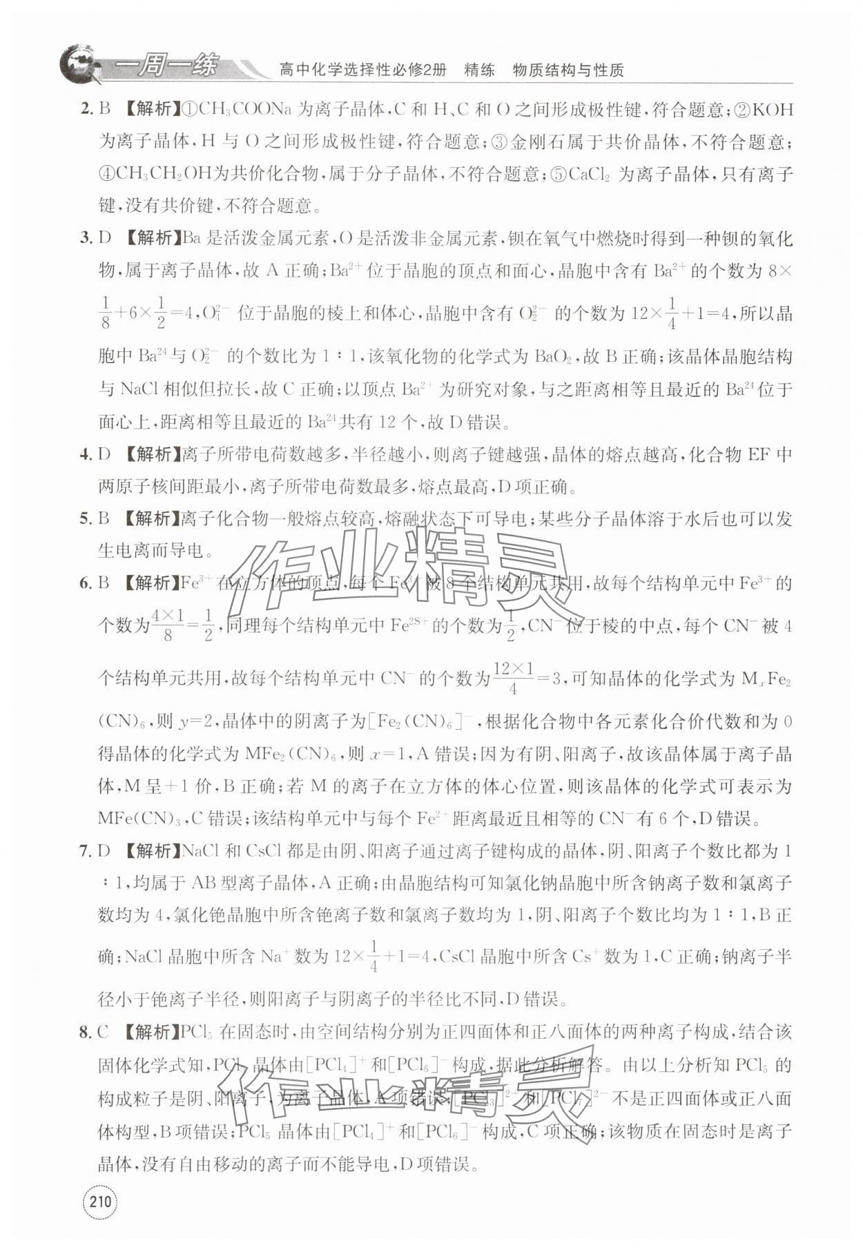 注:目前有些书本章节名称可能整理的还不是很完善,但都是按照顺序排列的,请同学们按照顺序仔细查找。练习册 2024年一周一练高中化学选择性必修第二册人教版 答案主要是用来给同学们做完题方便对答案用的,请勿直接抄袭。