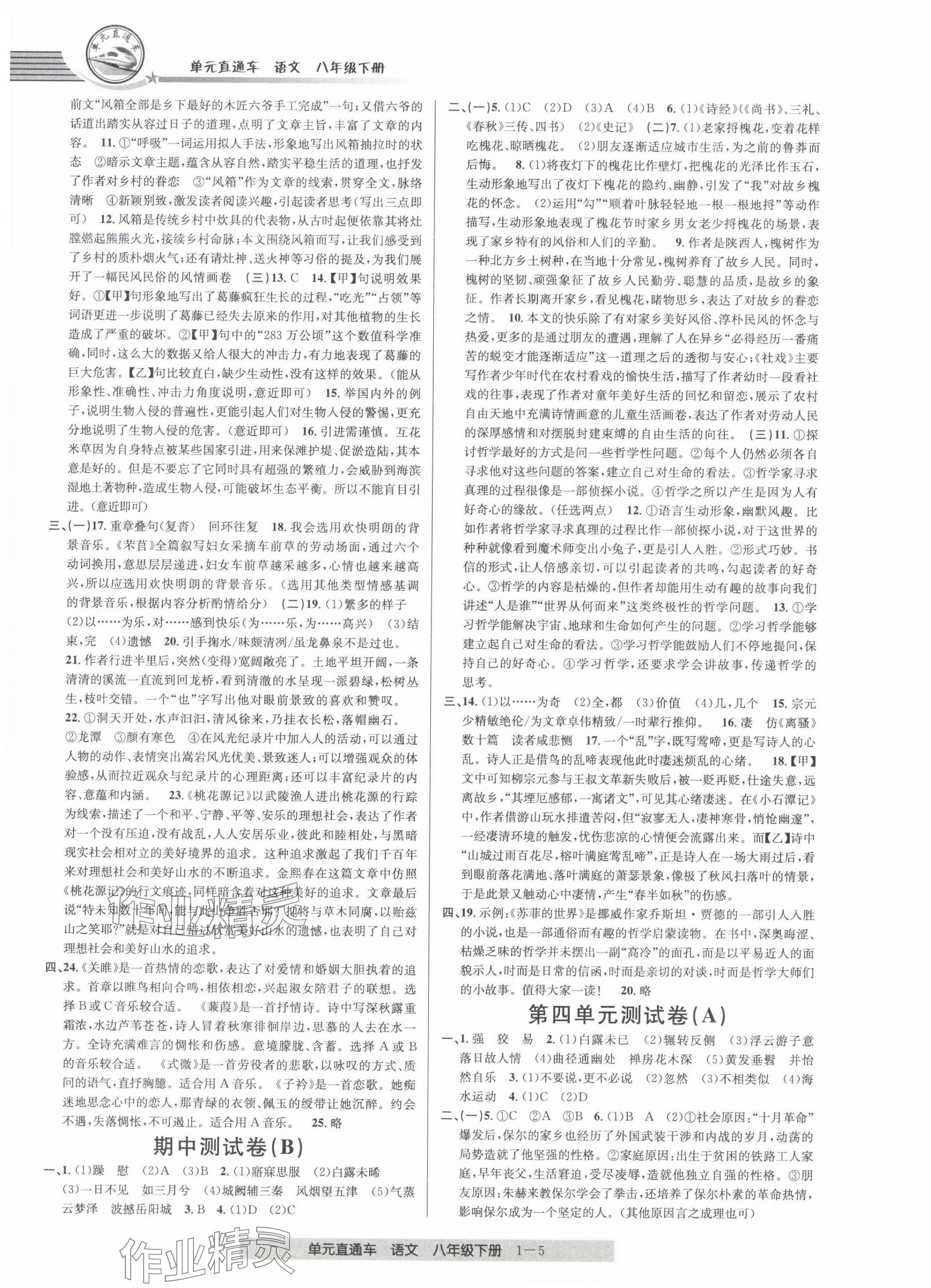 注:目前有些书本章节名称可能整理的还不是很完善,但都是按照顺序排列的,请同学们按照顺序仔细查找。练习册 2024年开源图书单元直通车八年级语文下册人教版 答案主要是用来给同学们做完题方便对答案用的,请勿直接抄袭。
