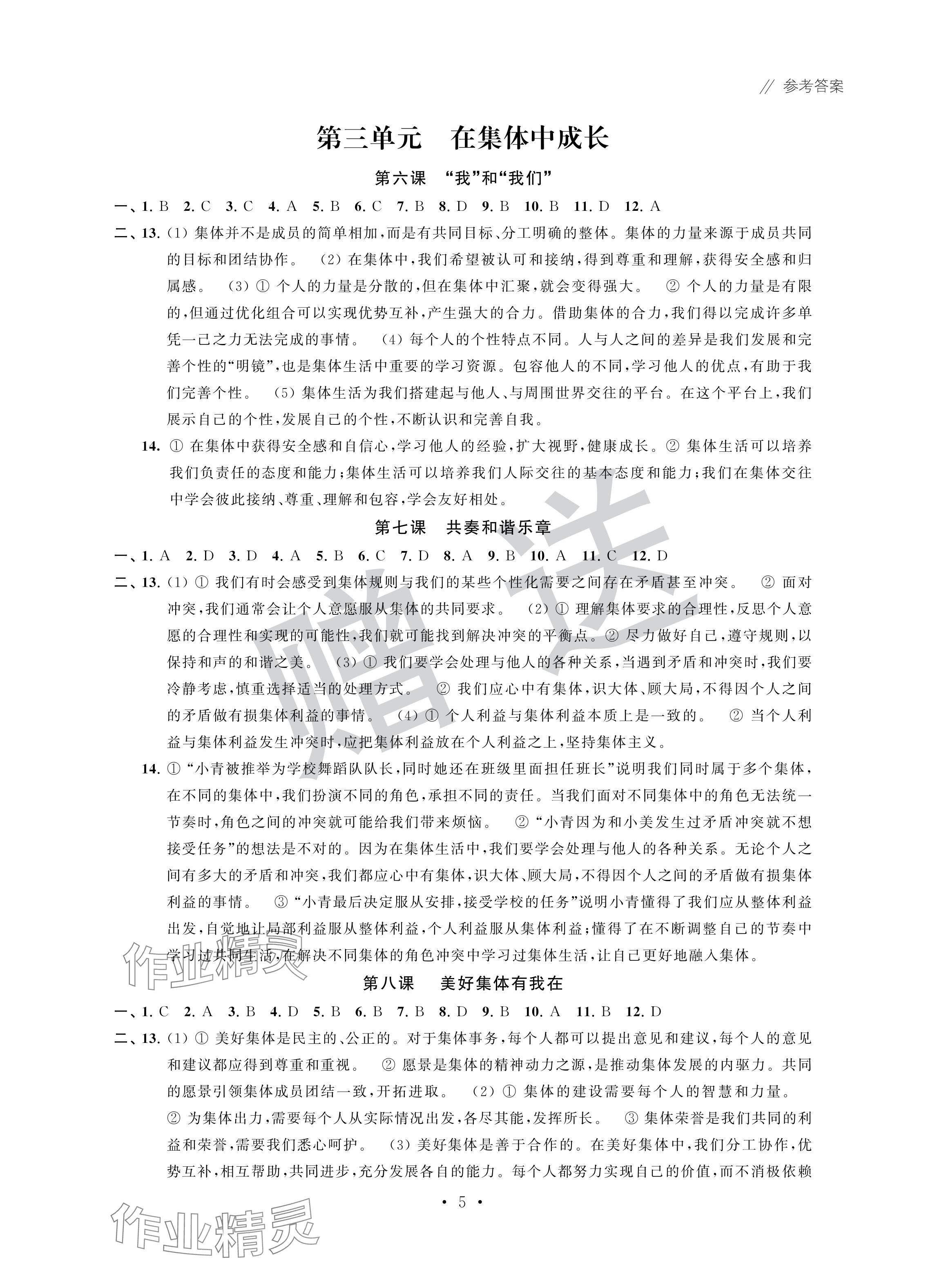 注:目前有些书本章节名称可能整理的还不是很完善,但都是按照顺序排列的,请同学们按照顺序仔细查找。练习册 2024年自主学习与测评单元活页卷七年级道德与法治下册人教版 答案主要是用来给同学们做完题方便对答案用的,请勿直接抄袭。
