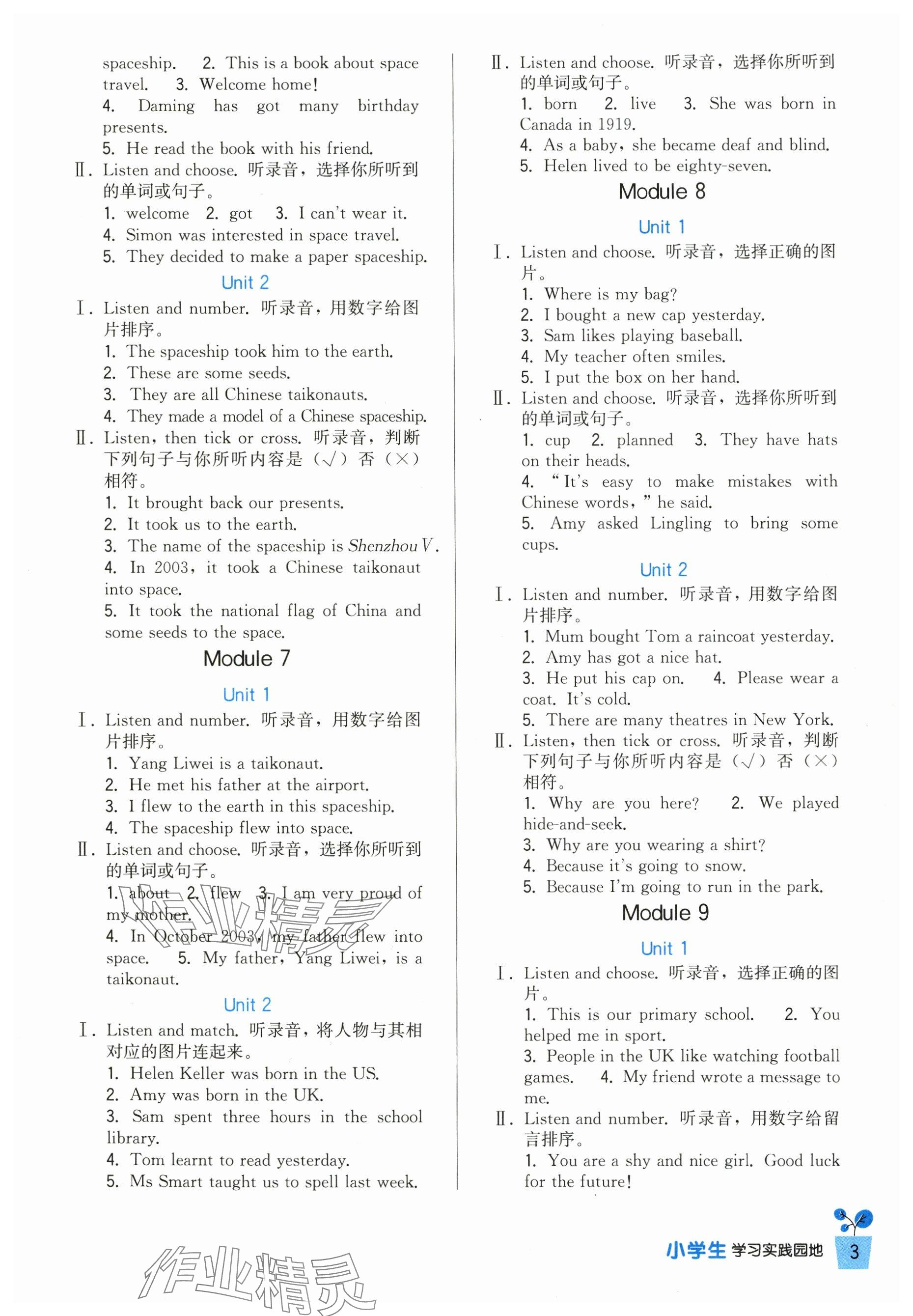 注:目前有些书本章节名称可能整理的还不是很完善,但都是按照顺序排列的,请同学们按照顺序仔细查找。练习册 2024年学习实践园地六年级英语下册外研版 答案主要是用来给同学们做完题方便对答案用的,请勿直接抄袭。