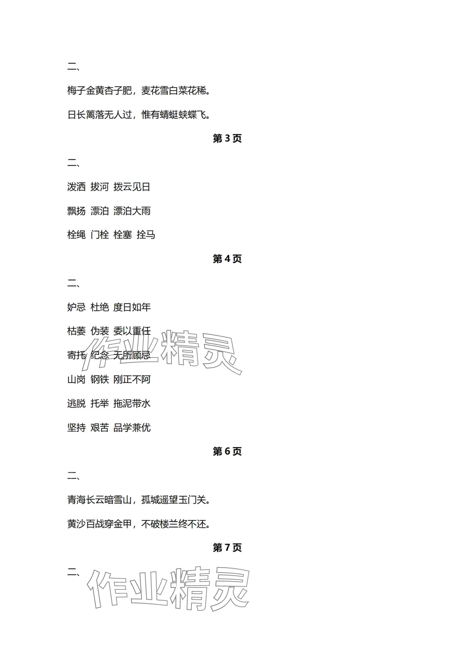 注:目前有些书本章节名称可能整理的还不是很完善,但都是按照顺序排列的,请同学们按照顺序仔细查找。练习册 2024年生字抄写本五年级语文下册人教版 答案主要是用来给同学们做完题方便对答案用的,请勿直接抄袭。