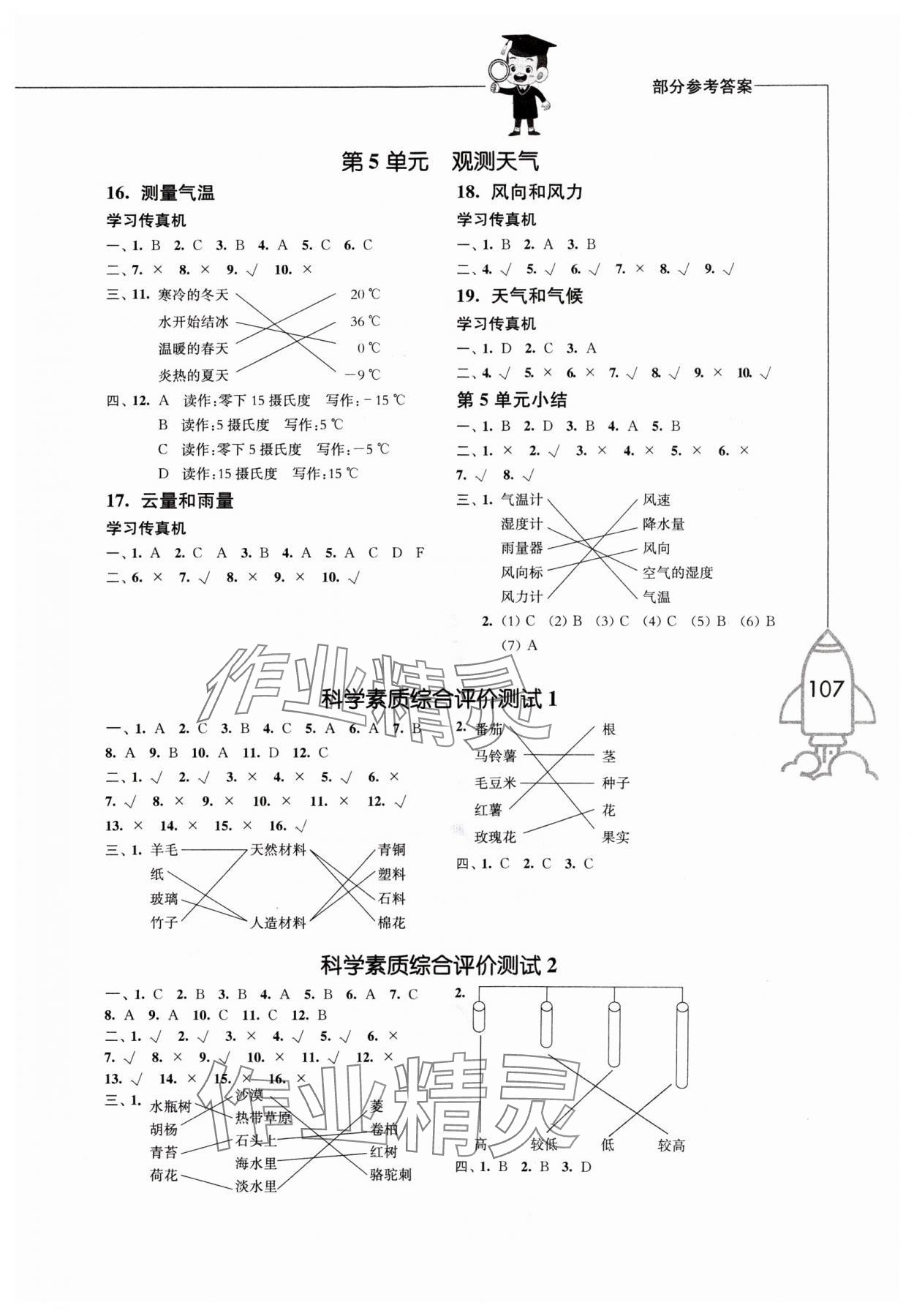 注:目前有些书本章节名称可能整理的还不是很完善,但都是按照顺序排列的,请同学们按照顺序仔细查找。练习册 2024年小学科学习作三年级科学下册苏教版 答案主要是用来给同学们做完题方便对答案用的,请勿直接抄袭。