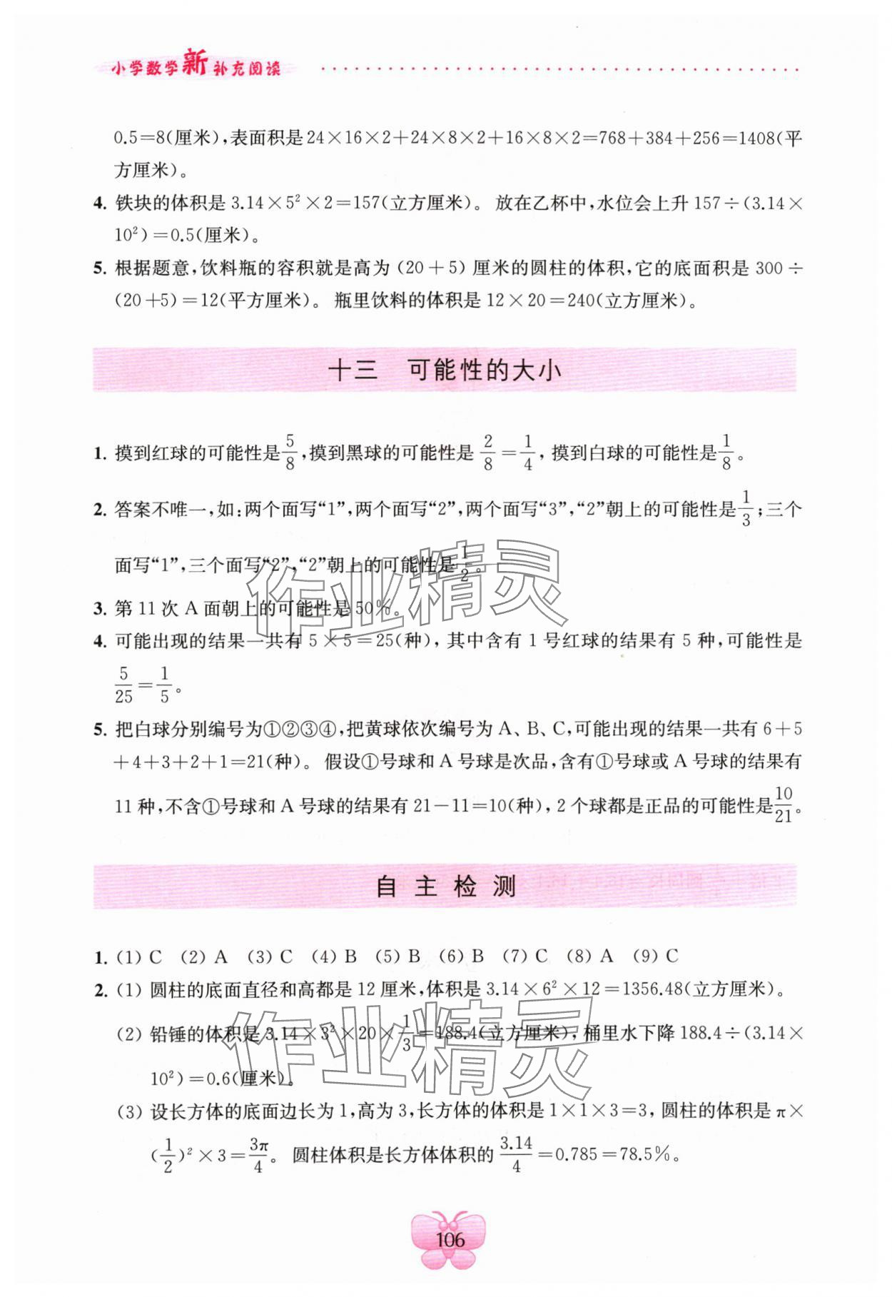 注:目前有些书本章节名称可能整理的还不是很完善,但都是按照顺序排列的,请同学们按照顺序仔细查找。练习册 2024年新补充阅读六年级数学下册苏教版 答案主要是用来给同学们做完题方便对答案用的,请勿直接抄袭。