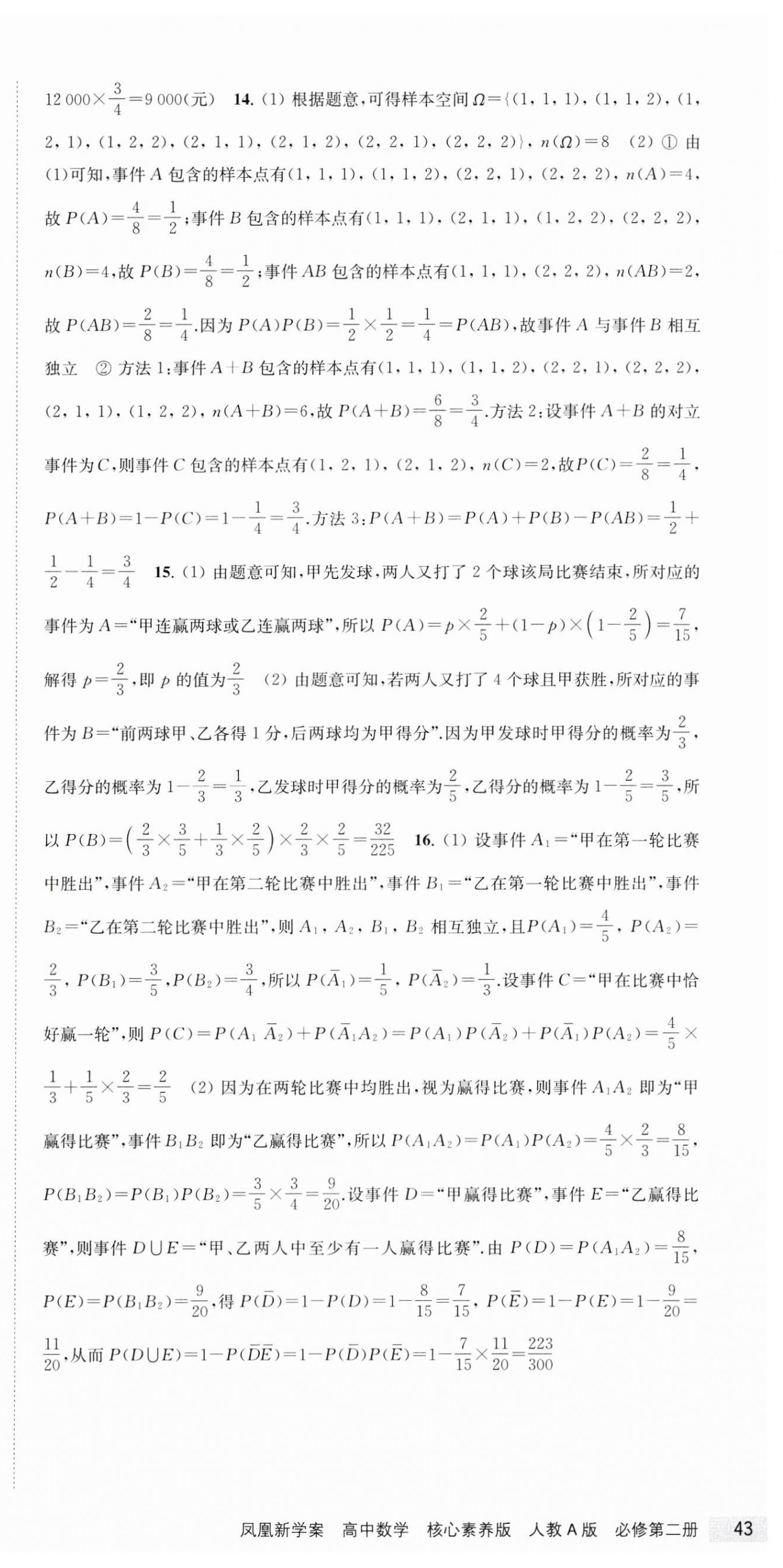 注:目前有些书本章节名称可能整理的还不是很完善,但都是按照顺序排列的,请同学们按照顺序仔细查找。练习册 2024年凤凰新学案高中数学必修第二册人教A版 答案主要是用来给同学们做完题方便对答案用的,请勿直接抄袭。
