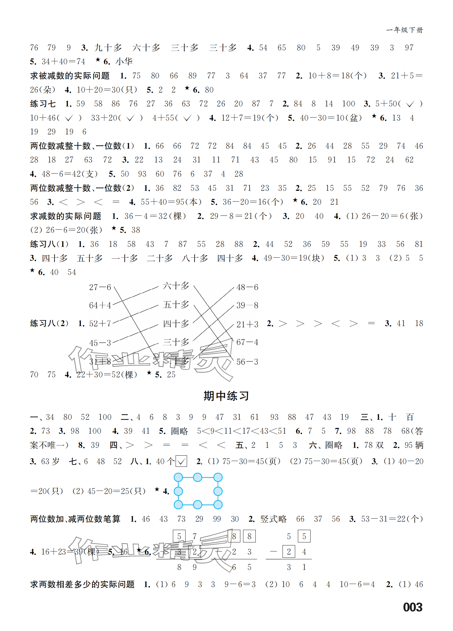 注:目前有些书本章节名称可能整理的还不是很完善,但都是按照顺序排列的,请同学们按照顺序仔细查找。练习册 2024年课堂练习一年级数学下册人教版福建专版 答案主要是用来给同学们做完题方便对答案用的,请勿直接抄袭。