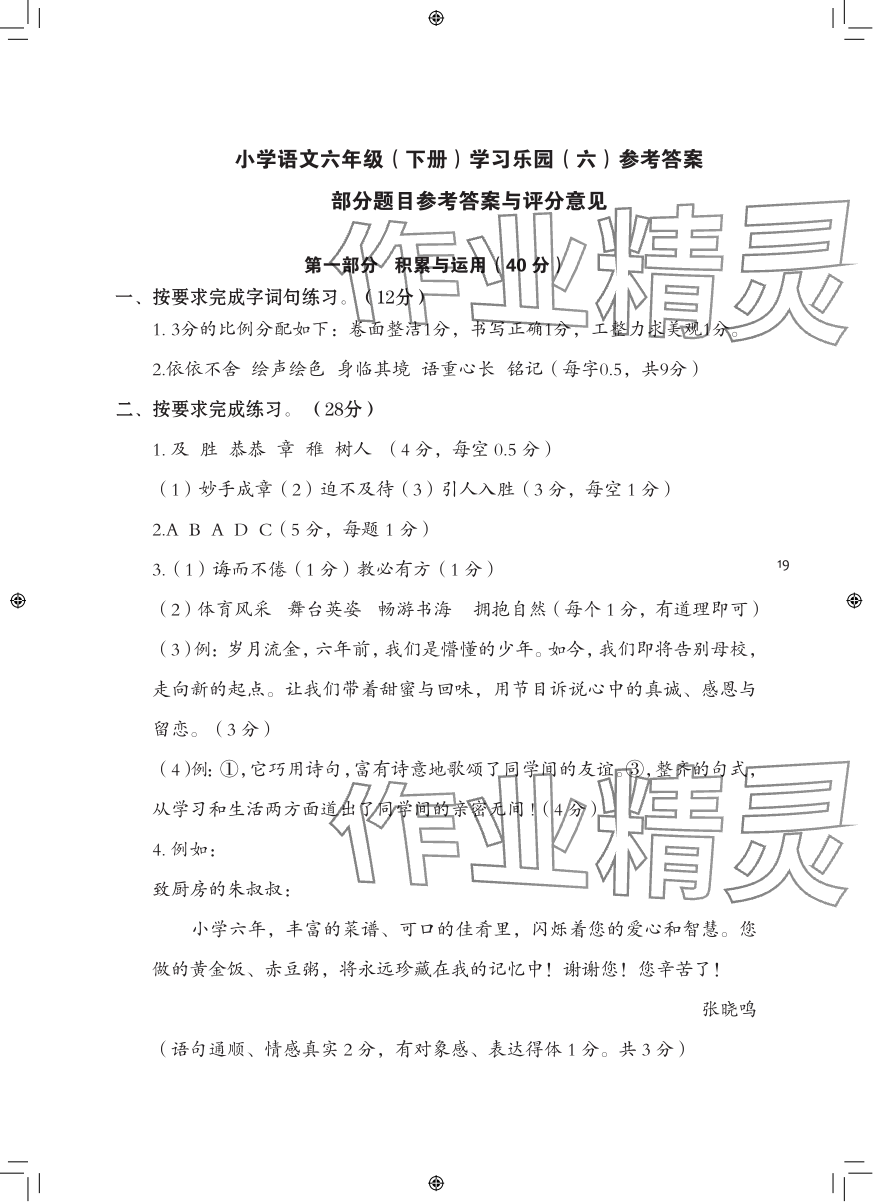 注:目前有些书本章节名称可能整理的还不是很完善,但都是按照顺序排列的,请同学们按照顺序仔细查找。练习册 2024年七彩语文六年级语文下册人教版 答案主要是用来给同学们做完题方便对答案用的,请勿直接抄袭。