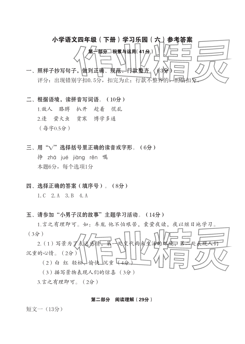注:目前有些书本章节名称可能整理的还不是很完善,但都是按照顺序排列的,请同学们按照顺序仔细查找。练习册 2024年七彩语文四年级语文下册人教版 答案主要是用来给同学们做完题方便对答案用的,请勿直接抄袭。