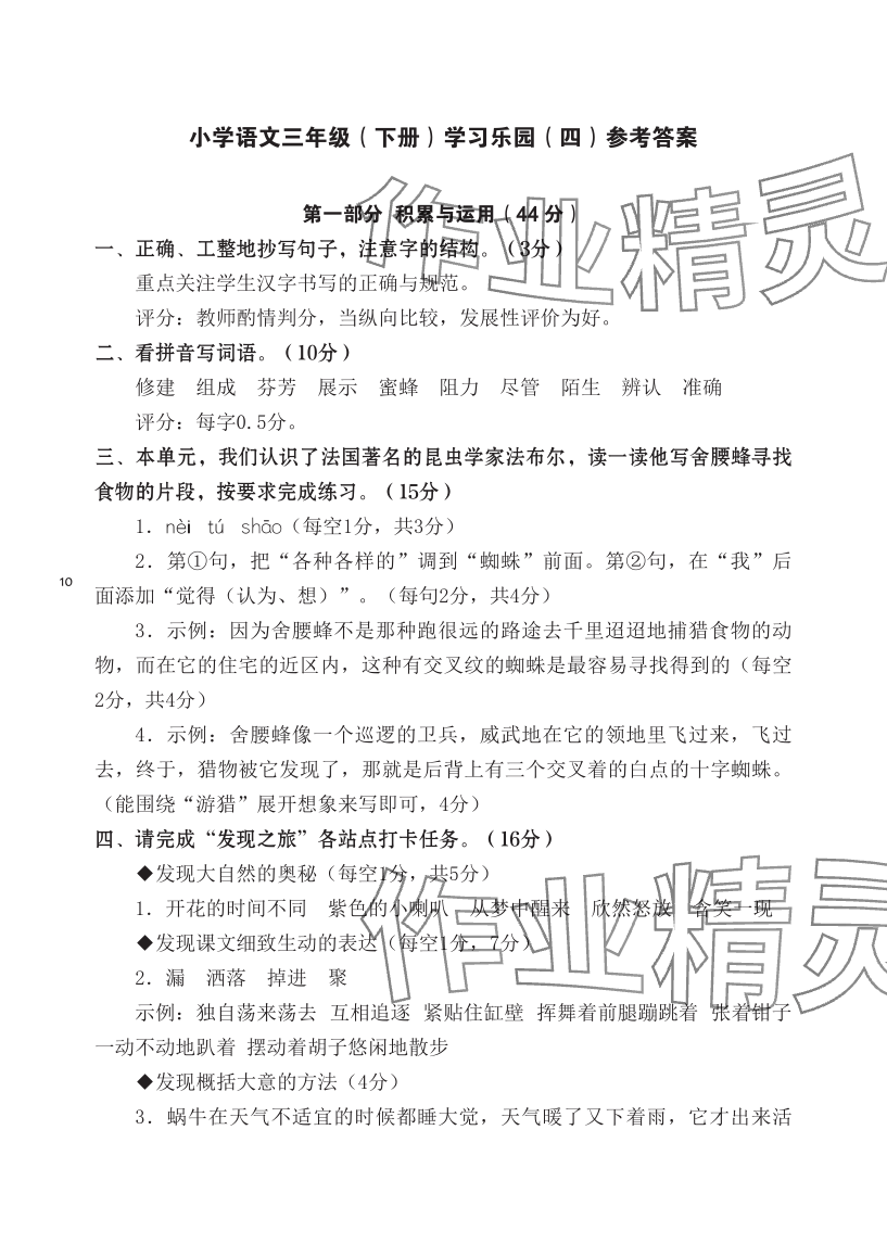 注:目前有些书本章节名称可能整理的还不是很完善,但都是按照顺序排列的,请同学们按照顺序仔细查找。练习册 2024年七彩语文三年级语文下册人教版 答案主要是用来给同学们做完题方便对答案用的,请勿直接抄袭。