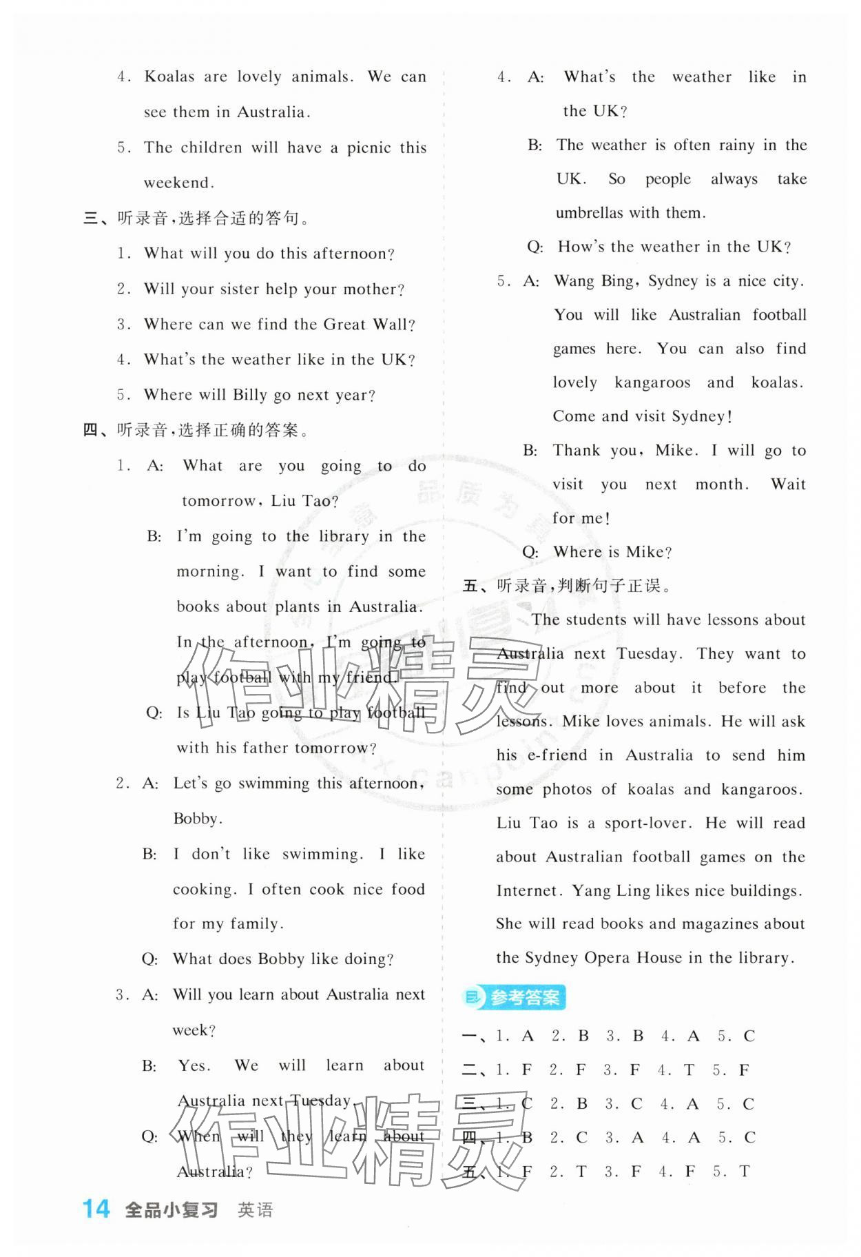 注:目前有些书本章节名称可能整理的还不是很完善,但都是按照顺序排列的,请同学们按照顺序仔细查找。练习册 2024年全品小复习六年级英语下册译林版 答案主要是用来给同学们做完题方便对答案用的,请勿直接抄袭。
