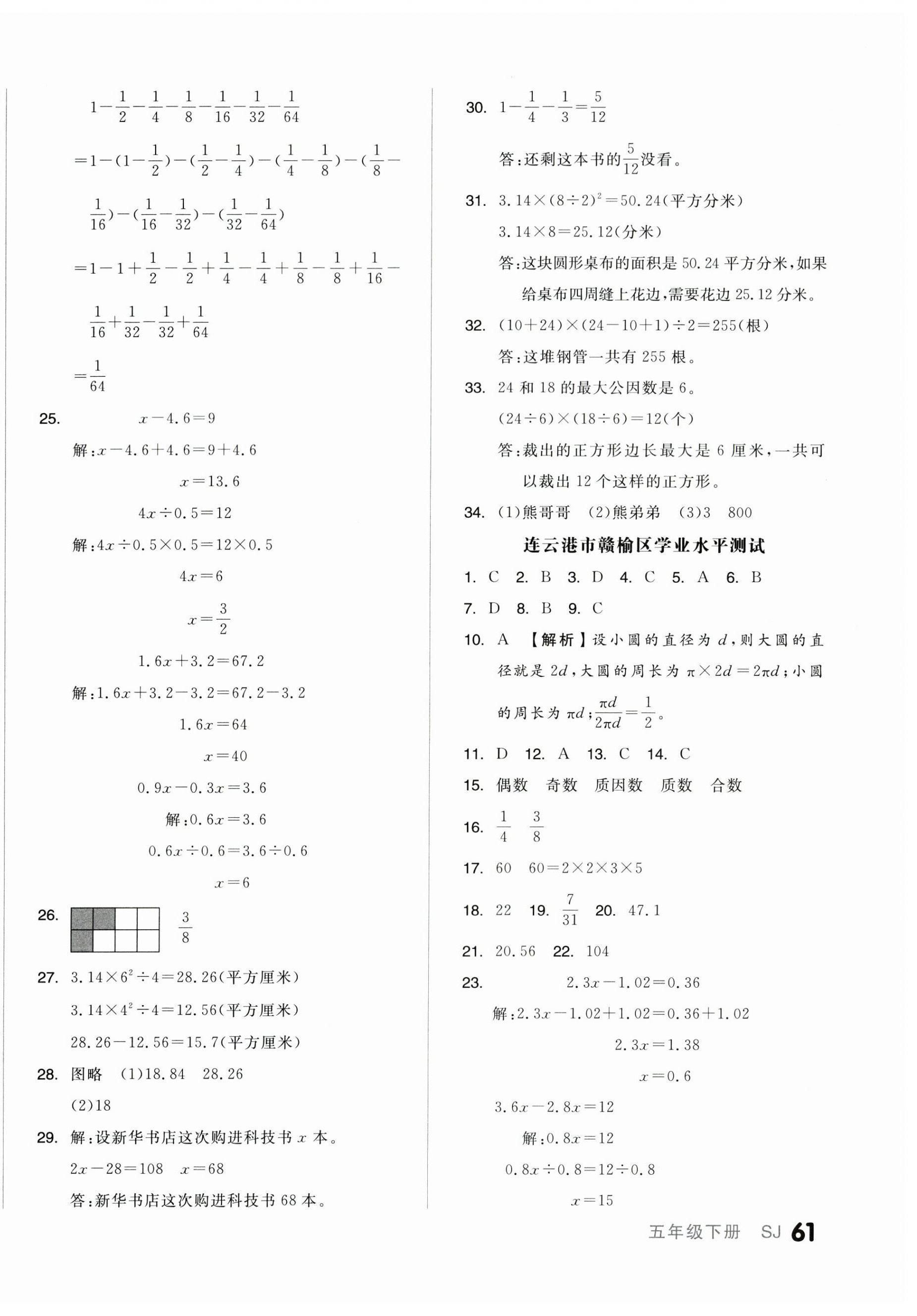 注:目前有些书本章节名称可能整理的还不是很完善,但都是按照顺序排列的,请同学们按照顺序仔细查找。练习册 2024年全品小复习五年级数学下册苏教版 答案主要是用来给同学们做完题方便对答案用的,请勿直接抄袭。