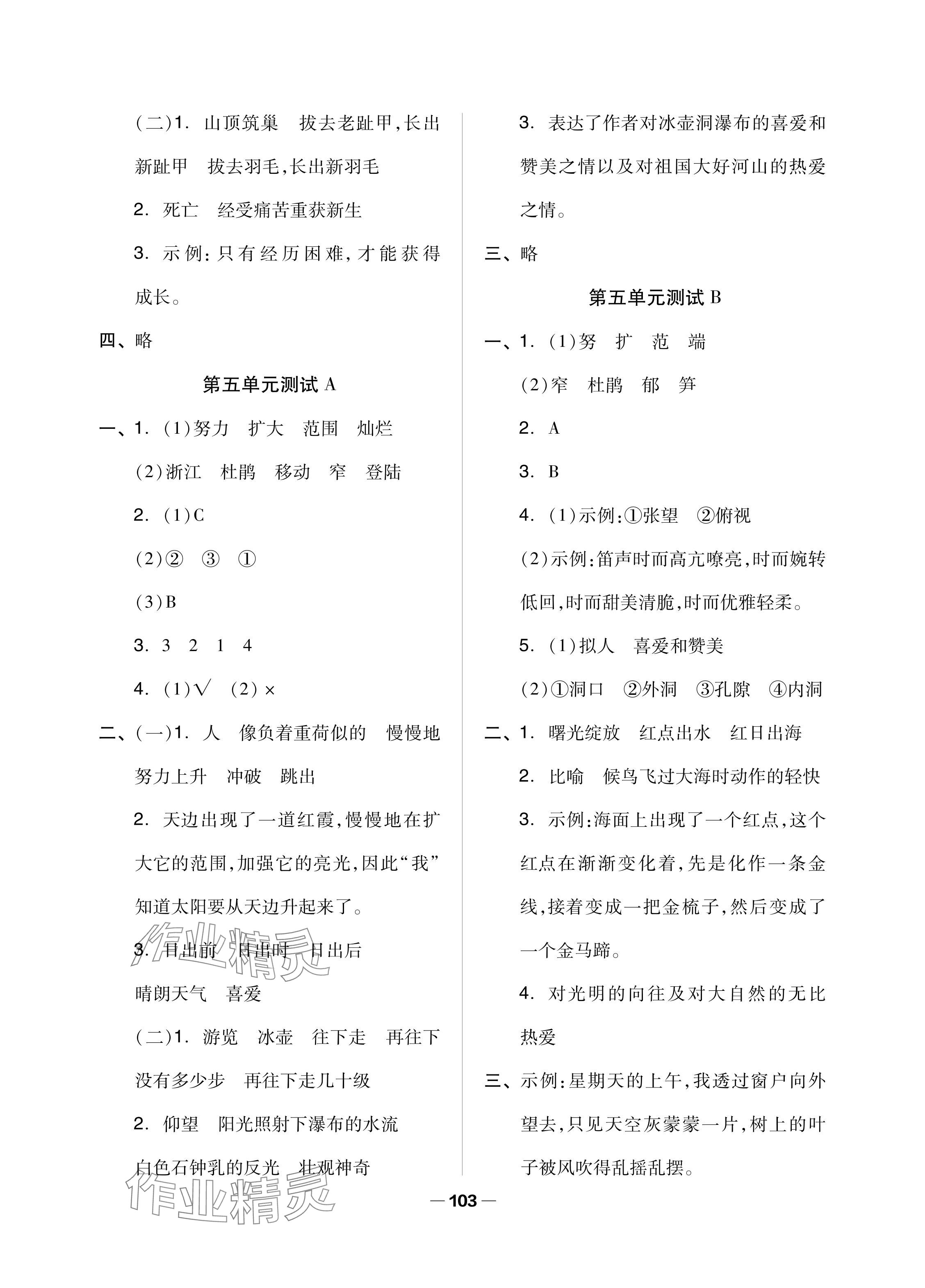 注:目前有些书本章节名称可能整理的还不是很完善,但都是按照顺序排列的,请同学们按照顺序仔细查找。练习册 2024年同步练习册配套单元自测试卷四年级语文下册人教版 答案主要是用来给同学们做完题方便对答案用的,请勿直接抄袭。