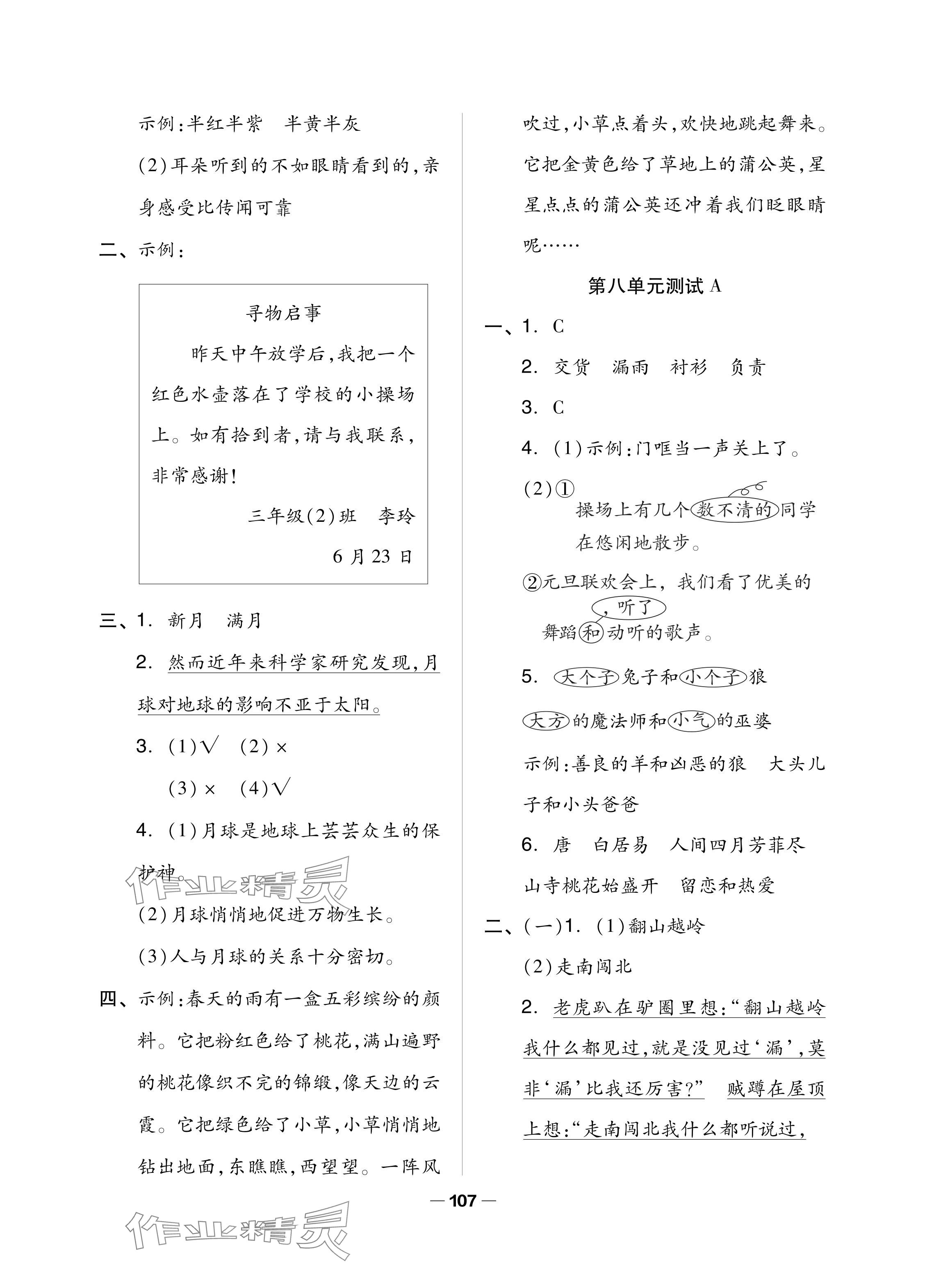 注:目前有些书本章节名称可能整理的还不是很完善,但都是按照顺序排列的,请同学们按照顺序仔细查找。练习册 2024年同步练习册配套单元自测试卷三年级语文下册人教版 答案主要是用来给同学们做完题方便对答案用的,请勿直接抄袭。
