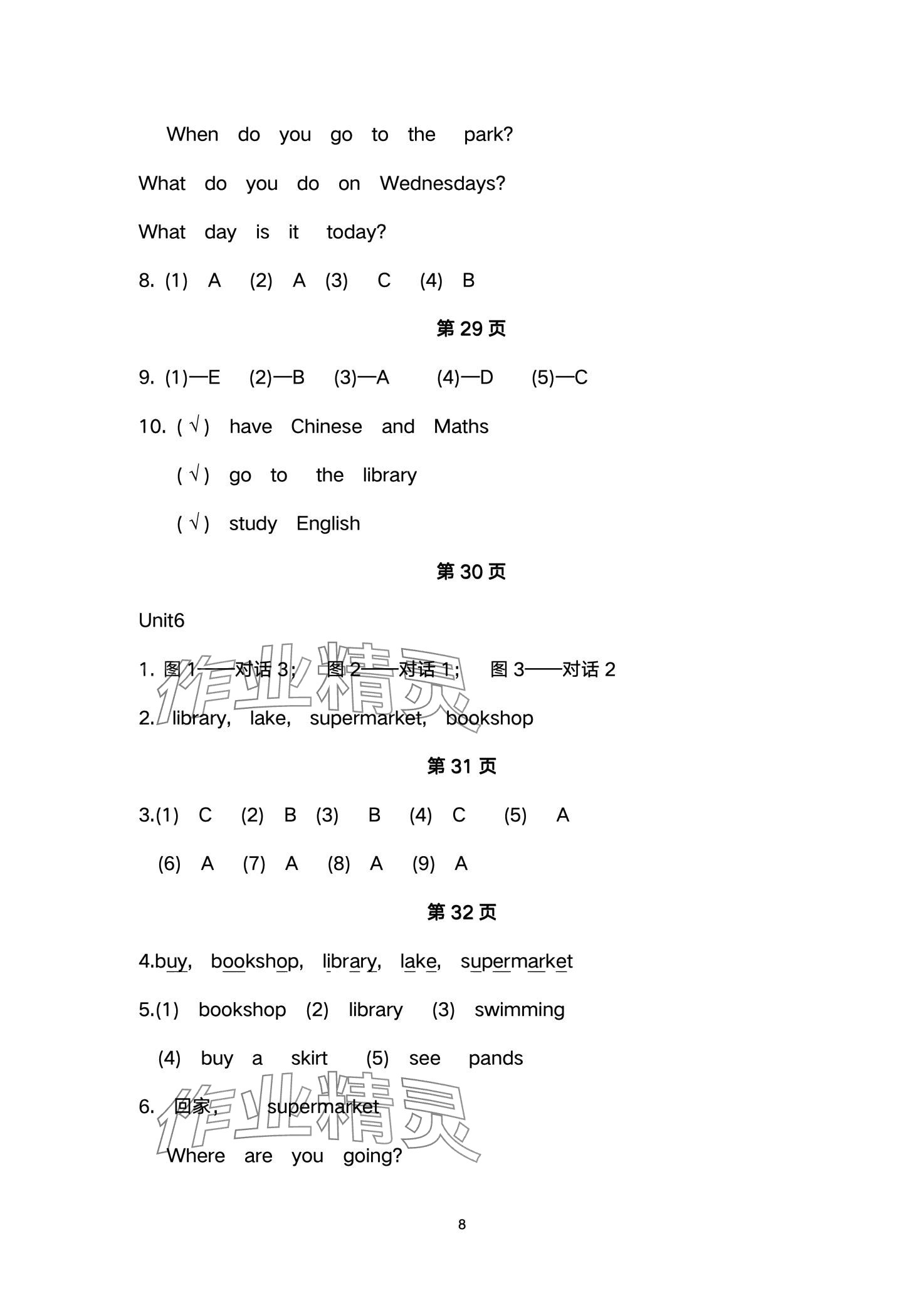 注:目前有些书本章节名称可能整理的还不是很完善,但都是按照顺序排列的,请同学们按照顺序仔细查找。练习册 2024年英语活动手册四年级下册湘鲁教版 答案主要是用来给同学们做完题方便对答案用的,请勿直接抄袭。