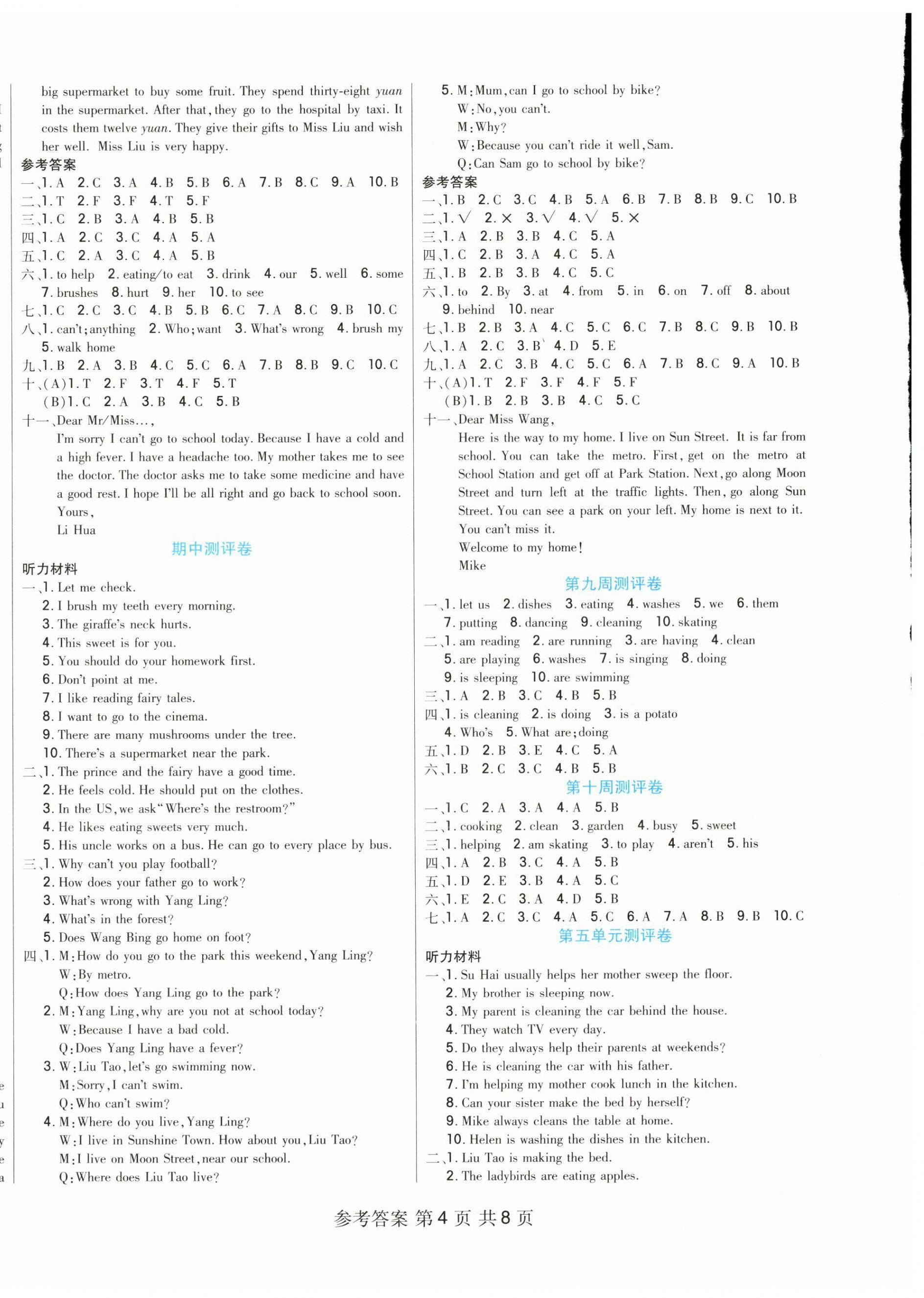 注:目前有些书本章节名称可能整理的还不是很完善,但都是按照顺序排列的,请同学们按照顺序仔细查找。练习册 2024年全优考王五年级英语下册译林版 答案主要是用来给同学们做完题方便对答案用的,请勿直接抄袭。