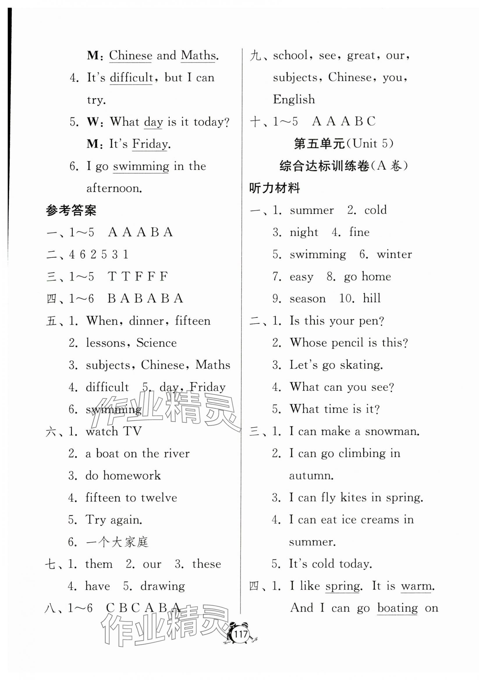 注:目前有些书本章节名称可能整理的还不是很完善,但都是按照顺序排列的,请同学们按照顺序仔细查找。练习册 2024年提优名卷四年级英语下册译林版 答案主要是用来给同学们做完题方便对答案用的,请勿直接抄袭。