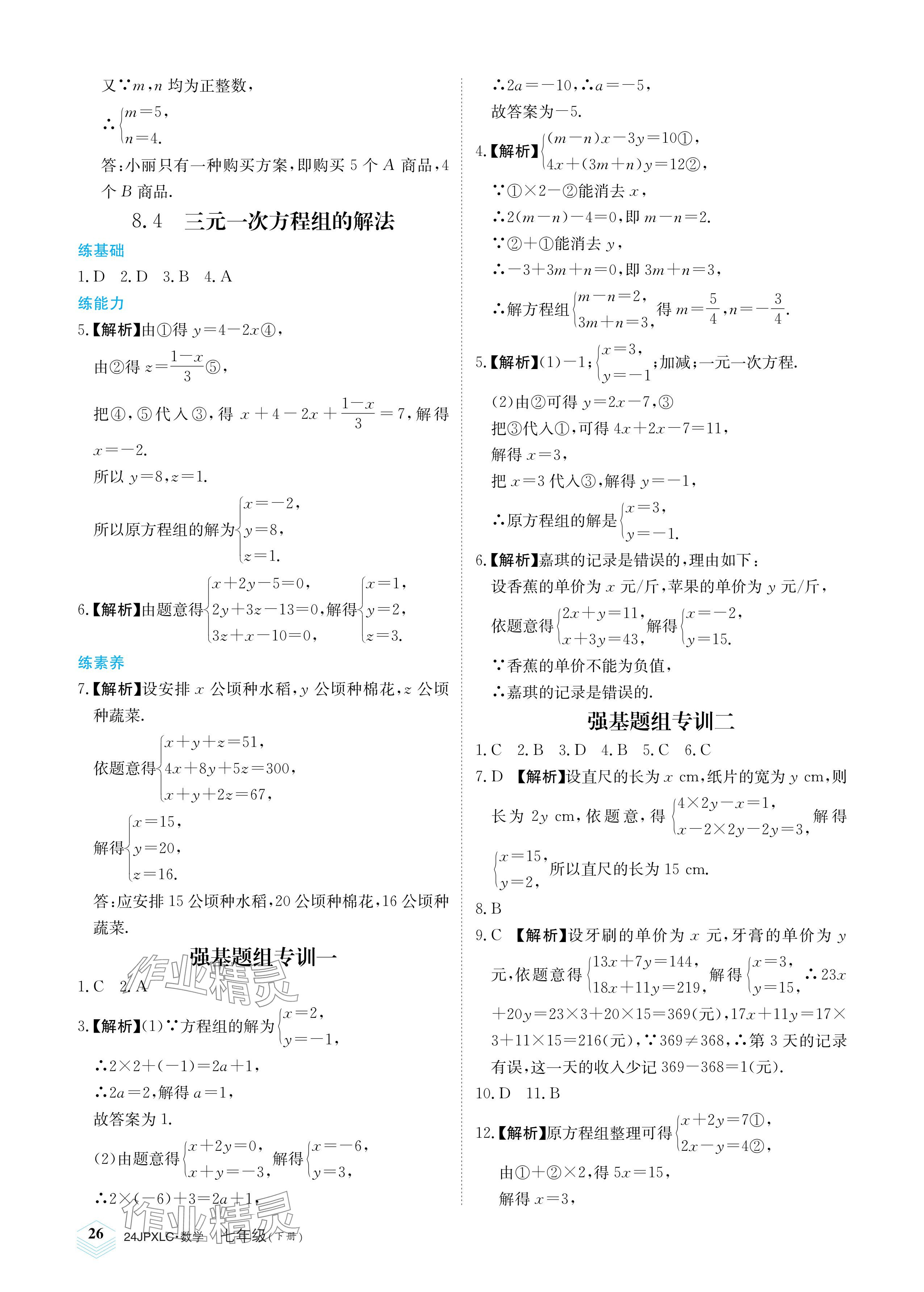注:目前有些书本章节名称可能整理的还不是很完善,但都是按照顺序排列的,请同学们按照顺序仔细查找。练习册 2024年金牌学练测七年级数学下册人教版 答案主要是用来给同学们做完题方便对答案用的,请勿直接抄袭。