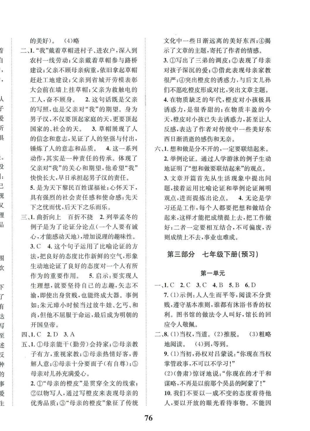 注:目前有些书本章节名称可能整理的还不是很完善,但都是按照顺序排列的,请同学们按照顺序仔细查找。练习册 2024年名校英才七年级语文人教版 答案主要是用来给同学们做完题方便对答案用的,请勿直接抄袭。
