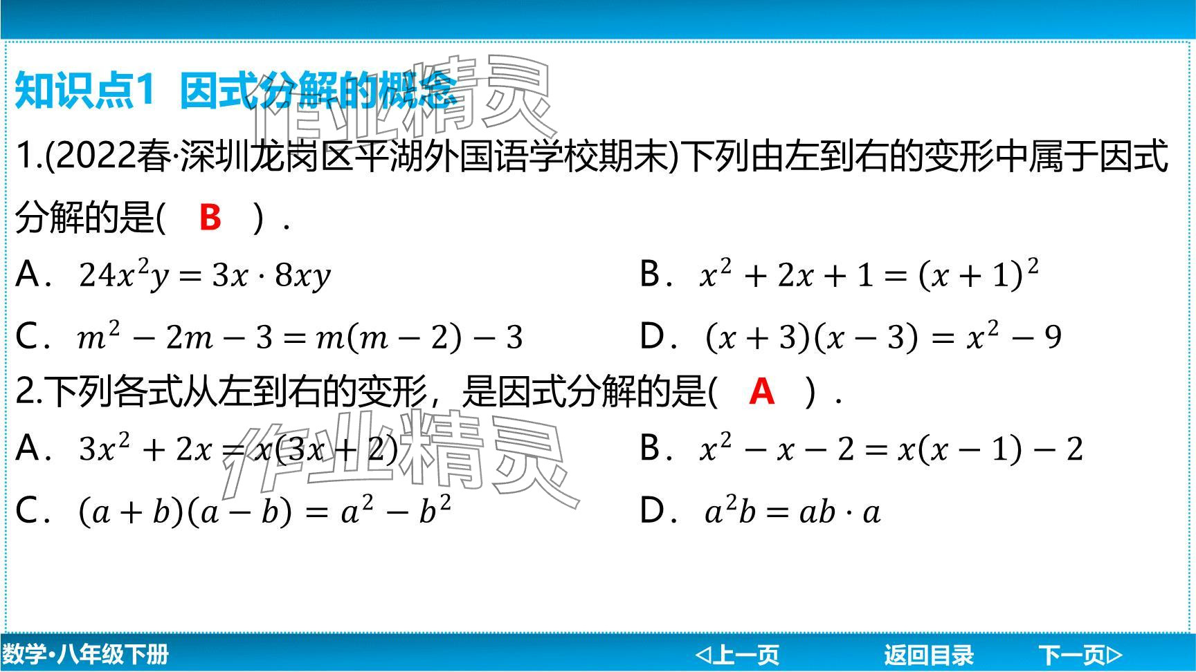 注:目前有些书本章节名称可能整理的还不是很完善,但都是按照顺序排列的,请同学们按照顺序仔细查找。练习册 2024年广东名师讲练通八年级数学下册北师大版深圳专版提升版 答案主要是用来给同学们做完题方便对答案用的,请勿直接抄袭。