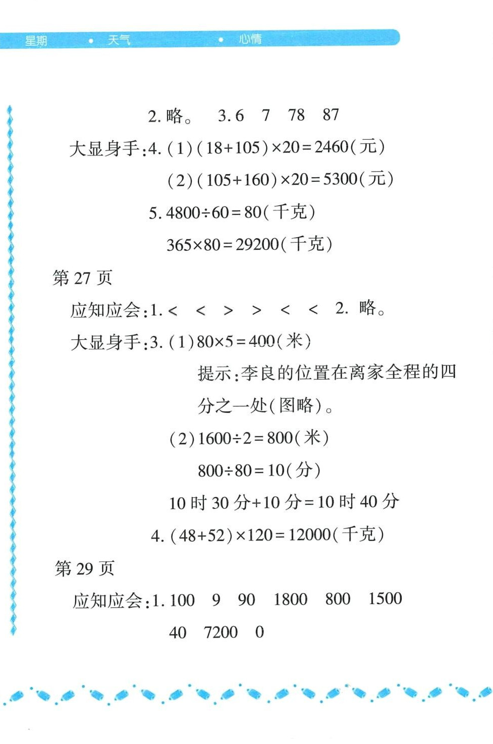 注:目前有些书本章节名称可能整理的还不是很完善,但都是按照顺序排列的,请同学们按照顺序仔细查找。练习册 2024年阳光假日寒假四年级数学北师大版 答案主要是用来给同学们做完题方便对答案用的,请勿直接抄袭。