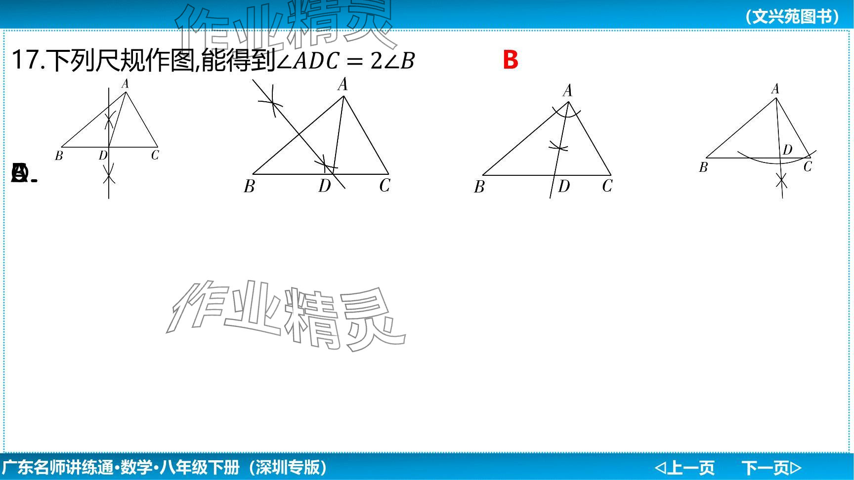 注:目前有些书本章节名称可能整理的还不是很完善,但都是按照顺序排列的,请同学们按照顺序仔细查找。练习册 2024年广东名师讲练通八年级数学下册北师大版深圳专版提升版 答案主要是用来给同学们做完题方便对答案用的,请勿直接抄袭。