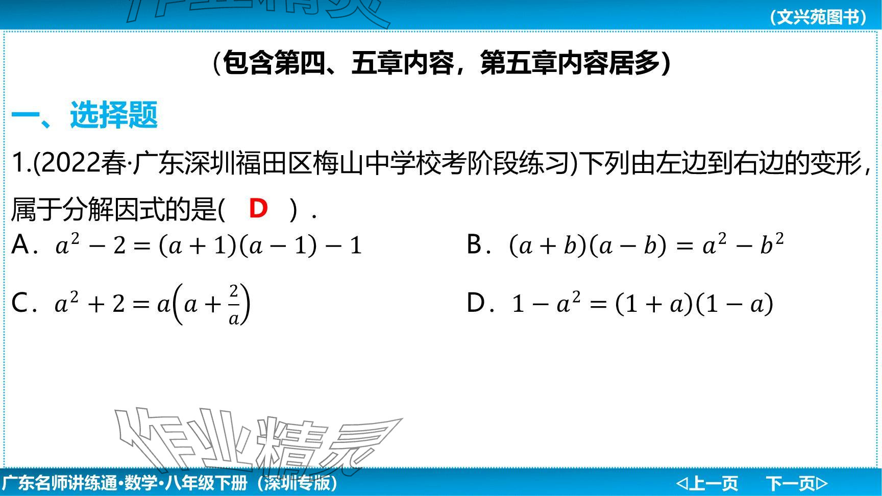 注:目前有些书本章节名称可能整理的还不是很完善,但都是按照顺序排列的,请同学们按照顺序仔细查找。练习册 2024年广东名师讲练通八年级数学下册北师大版深圳专版提升版 答案主要是用来给同学们做完题方便对答案用的,请勿直接抄袭。