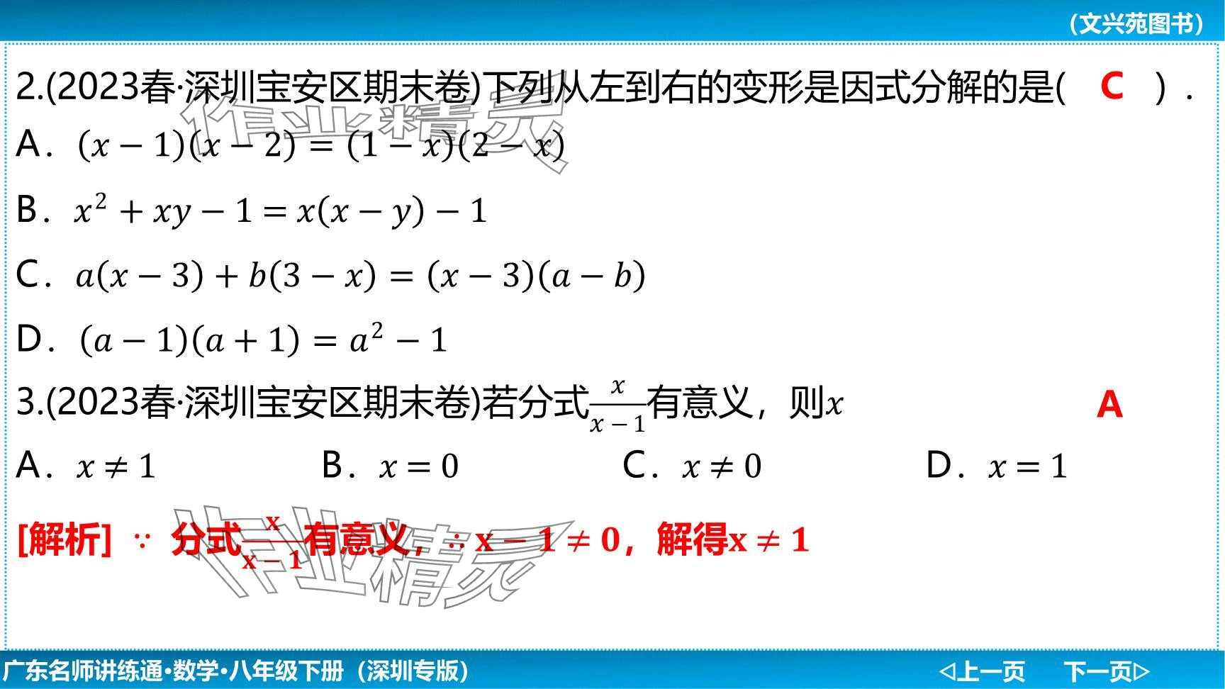 注:目前有些书本章节名称可能整理的还不是很完善,但都是按照顺序排列的,请同学们按照顺序仔细查找。练习册 2024年广东名师讲练通八年级数学下册北师大版深圳专版提升版 答案主要是用来给同学们做完题方便对答案用的,请勿直接抄袭。