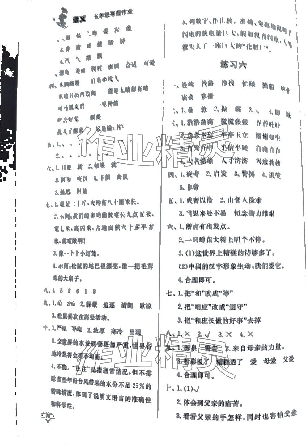 注:目前有些书本章节名称可能整理的还不是很完善,但都是按照顺序排列的,请同学们按照顺序仔细查找。练习册 2024年寒假作业知识出版社五年级语文人教版 答案主要是用来给同学们做完题方便对答案用的,请勿直接抄袭。