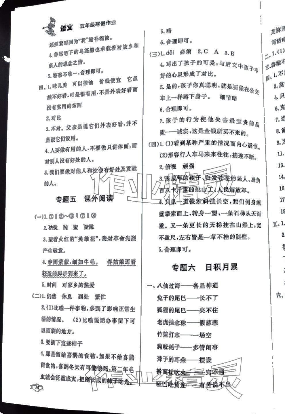 注:目前有些书本章节名称可能整理的还不是很完善,但都是按照顺序排列的,请同学们按照顺序仔细查找。练习册 2024年寒假作业知识出版社五年级语文人教版 答案主要是用来给同学们做完题方便对答案用的,请勿直接抄袭。