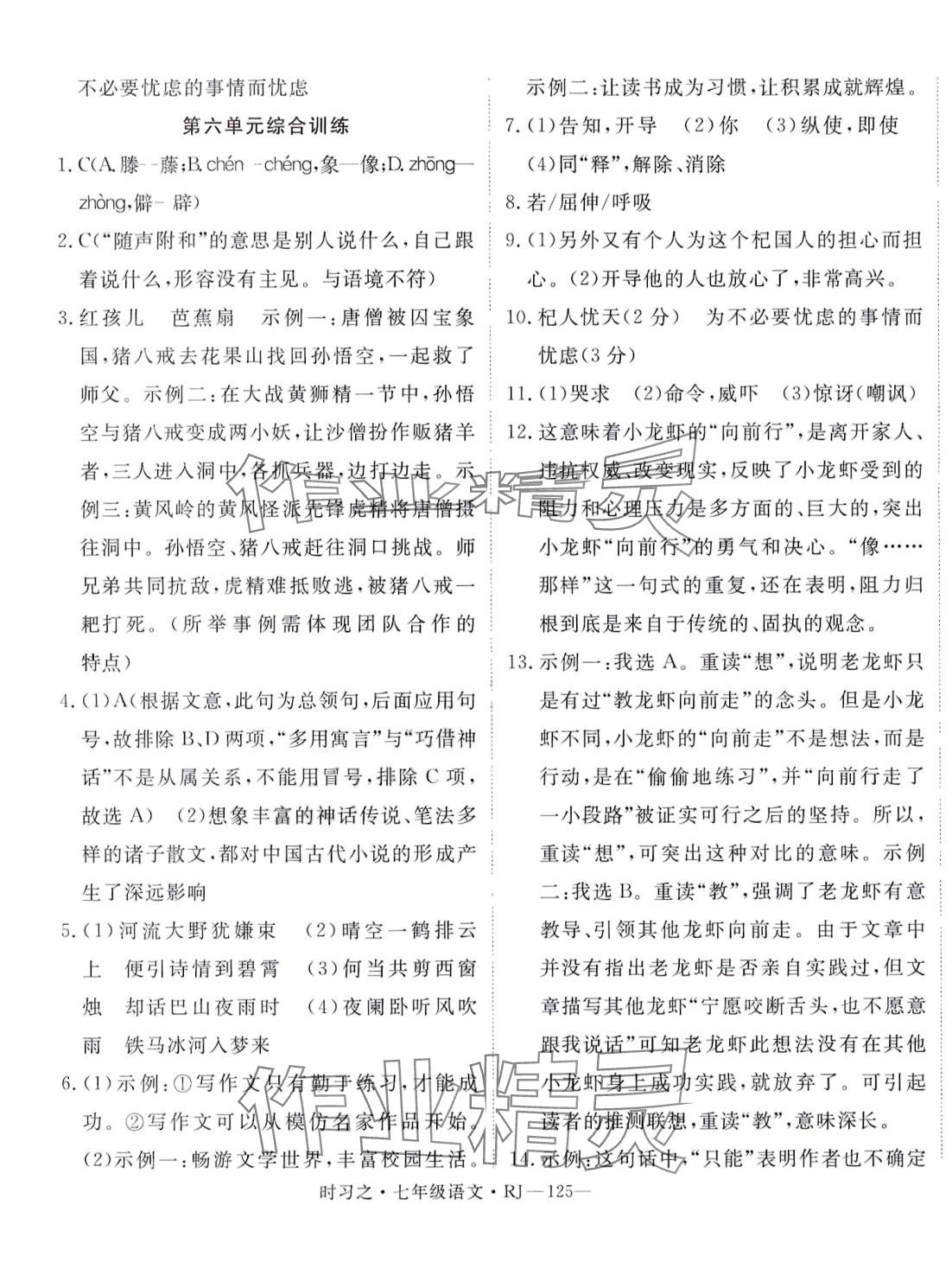 注:目前有些书本章节名称可能整理的还不是很完善,但都是按照顺序排列的,请同学们按照顺序仔细查找。练习册 2024年时习之期末加寒假七年级语文人教版 答案主要是用来给同学们做完题方便对答案用的,请勿直接抄袭。