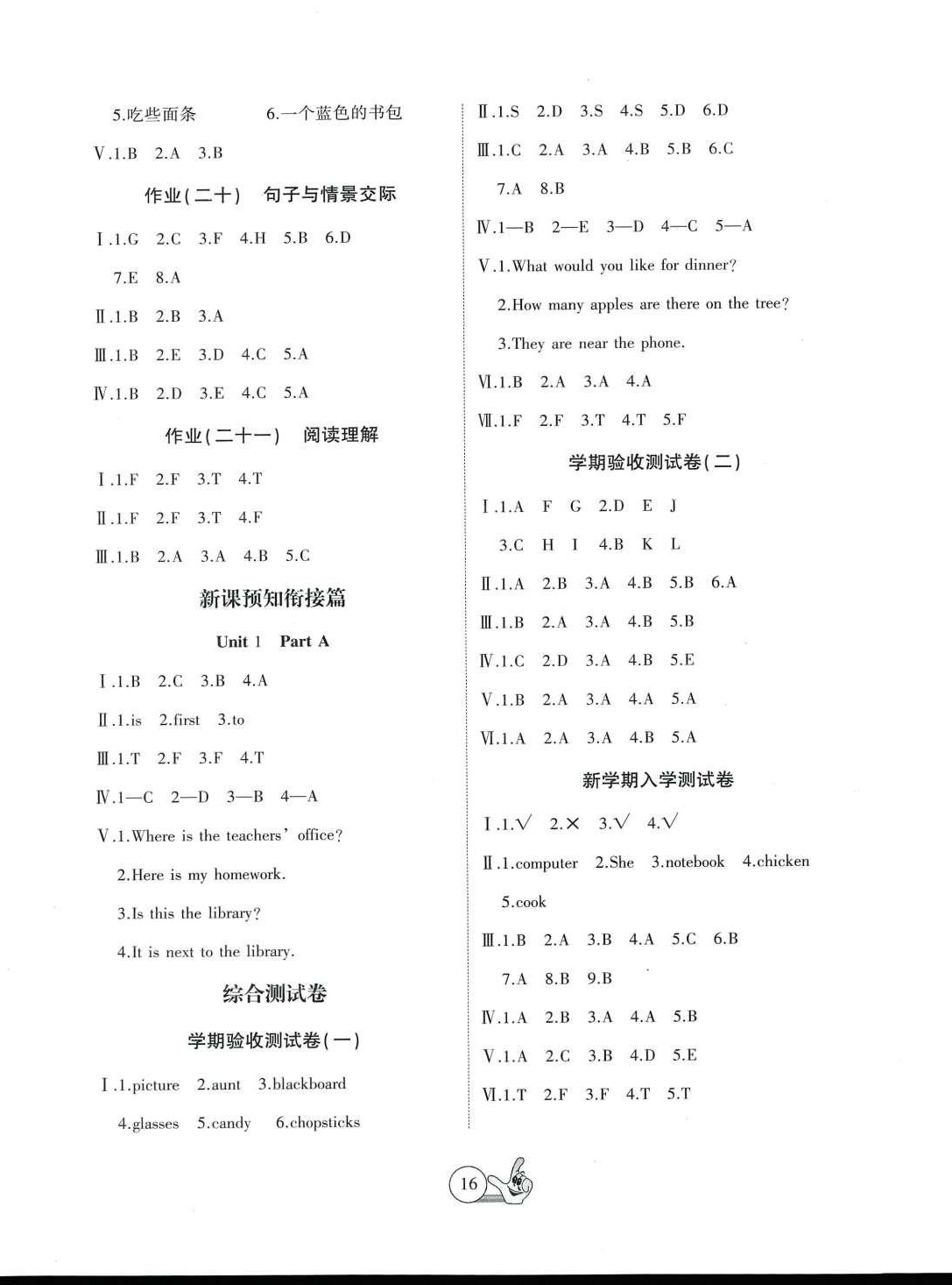 注:目前有些书本章节名称可能整理的还不是很完善,但都是按照顺序排列的,请同学们按照顺序仔细查找。练习册 2024年全优假期派四年级英语人教版 答案主要是用来给同学们做完题方便对答案用的,请勿直接抄袭。