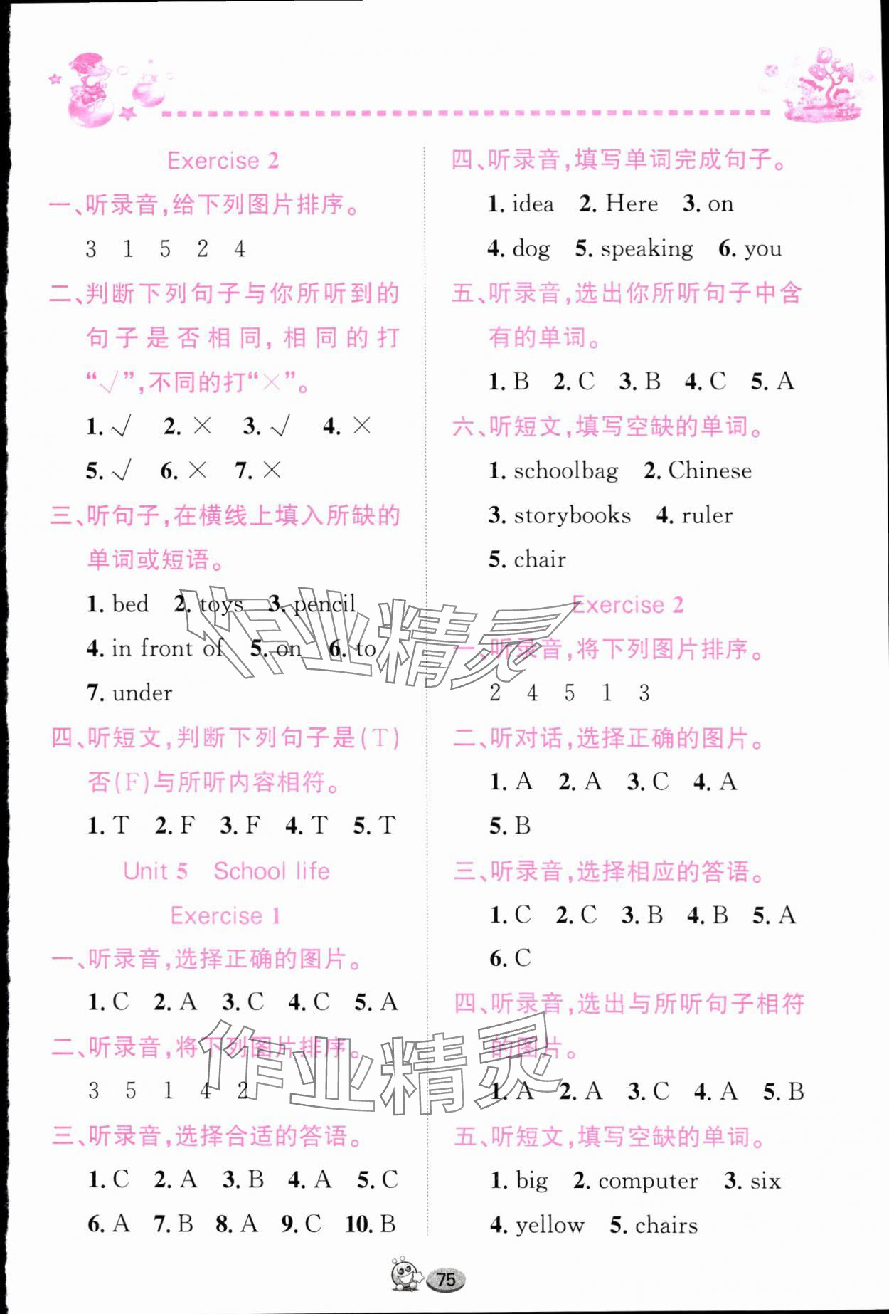 注:目前有些书本章节名称可能整理的还不是很完善,但都是按照顺序排列的,请同学们按照顺序仔细查找。练习册 2024年全优英语听力四年级英语下册Join in武汉专版 答案主要是用来给同学们做完题方便对答案用的,请勿直接抄袭。