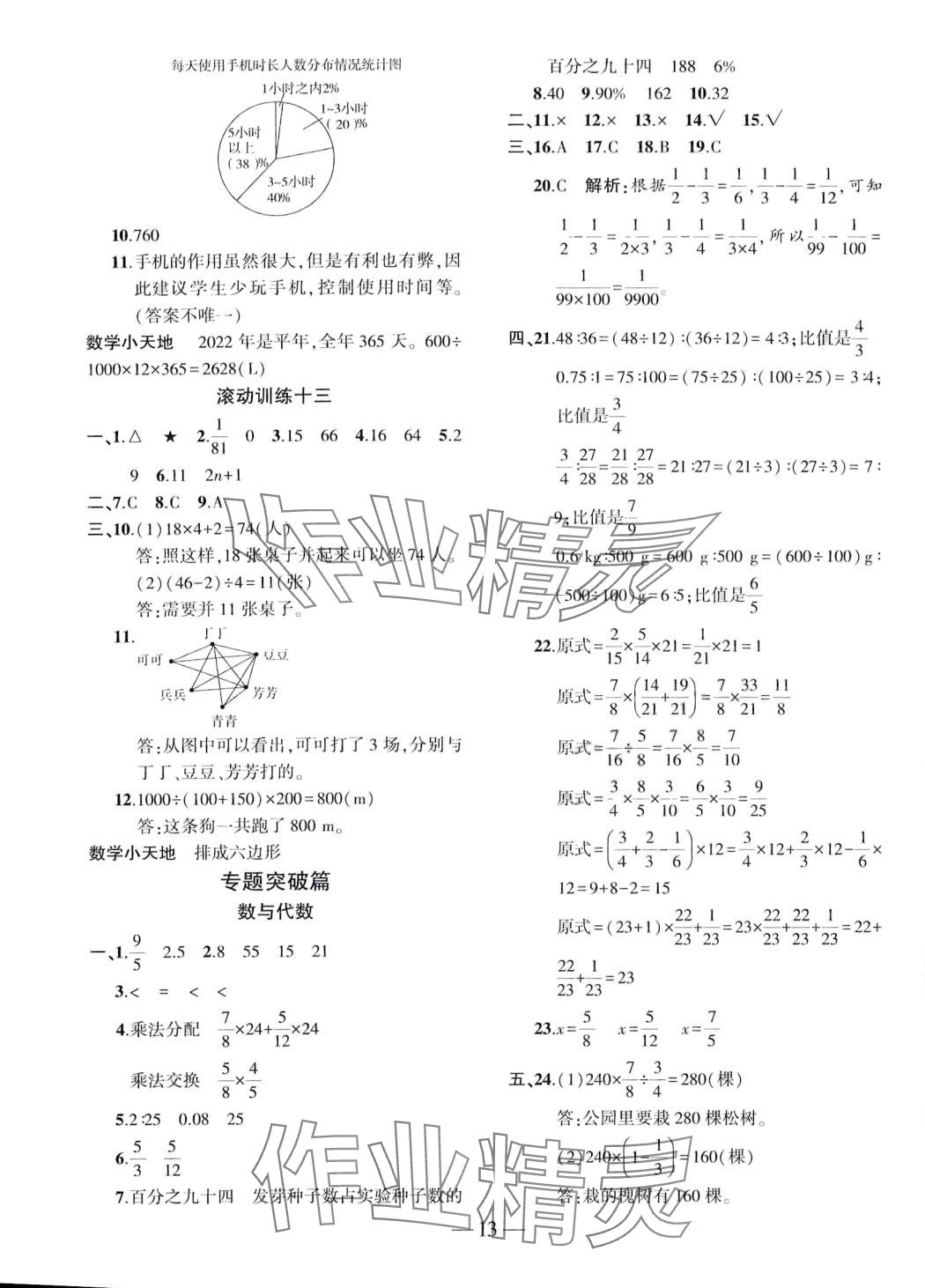 注:目前有些书本章节名称可能整理的还不是很完善,但都是按照顺序排列的,请同学们按照顺序仔细查找。练习册 2024年假期总动员寒假必刷题六年级数学人教版 答案主要是用来给同学们做完题方便对答案用的,请勿直接抄袭。