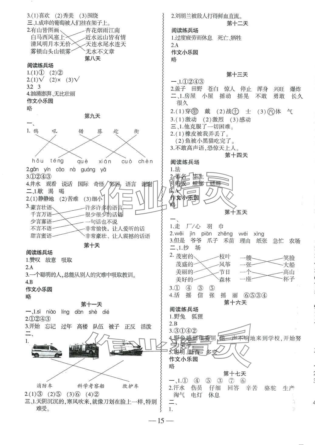 注:目前有些书本章节名称可能整理的还不是很完善,但都是按照顺序排列的,请同学们按照顺序仔细查找。练习册 2024年假期总动员寒假必刷题二年级语文人教版 答案主要是用来给同学们做完题方便对答案用的,请勿直接抄袭。