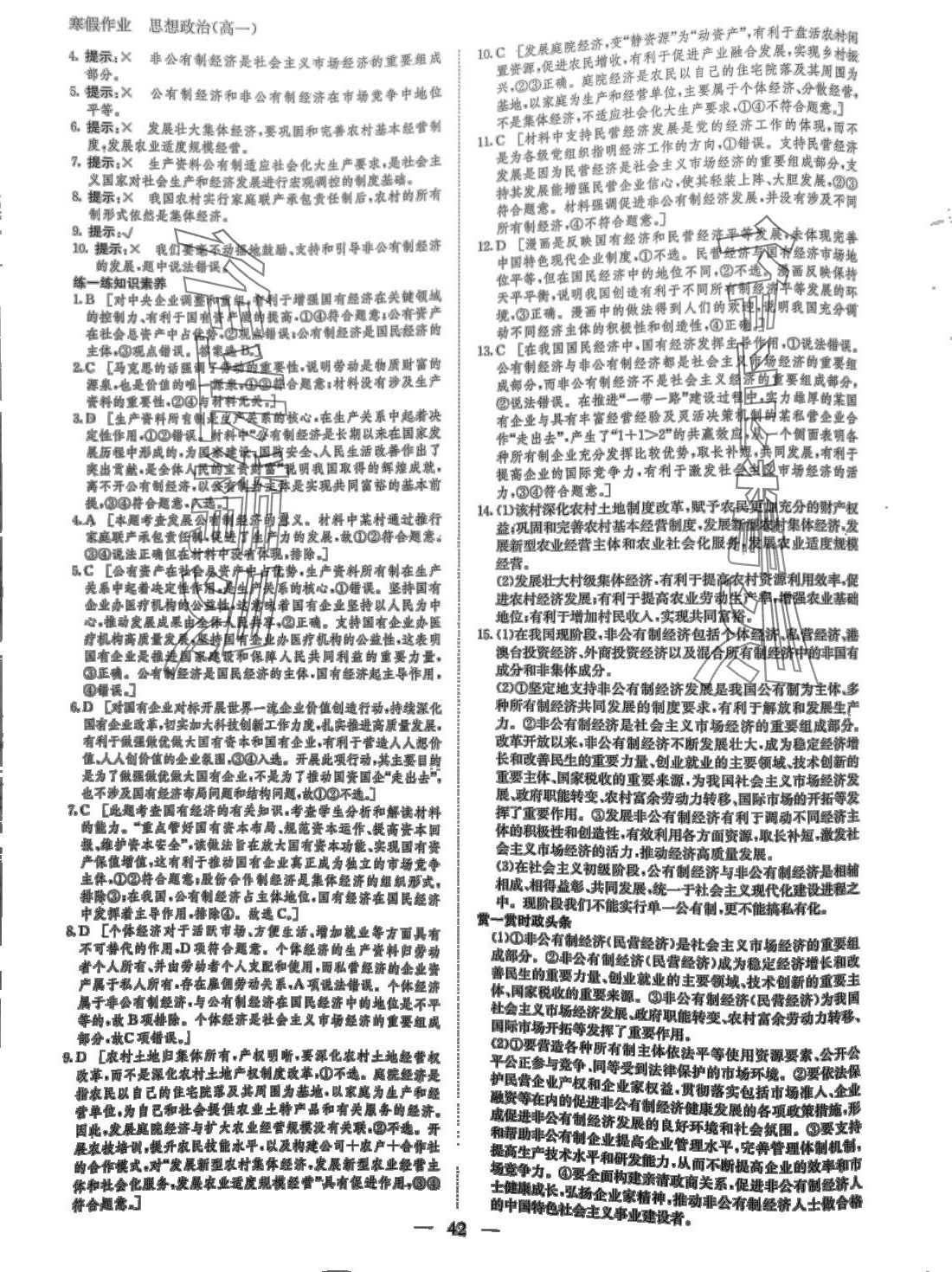 2024年寒假作业黑龙江教育出版社高一思想政治