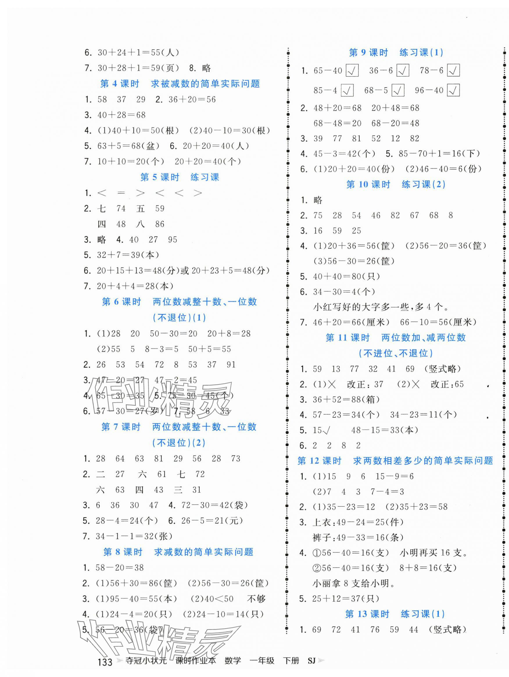 注:目前有些书本章节名称可能整理的还不是很完善,但都是按照顺序排列的,请同学们按照顺序仔细查找。练习册 2024年夺冠小状元课时作业本一年级数学下册苏教版 答案主要是用来给同学们做完题方便对答案用的,请勿直接抄袭。