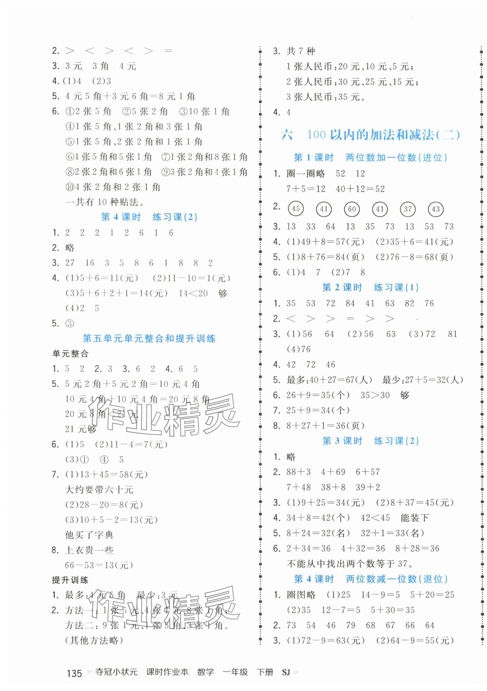 注:目前有些书本章节名称可能整理的还不是很完善,但都是按照顺序排列的,请同学们按照顺序仔细查找。练习册 2024年夺冠小状元课时作业本一年级数学下册苏教版 答案主要是用来给同学们做完题方便对答案用的,请勿直接抄袭。