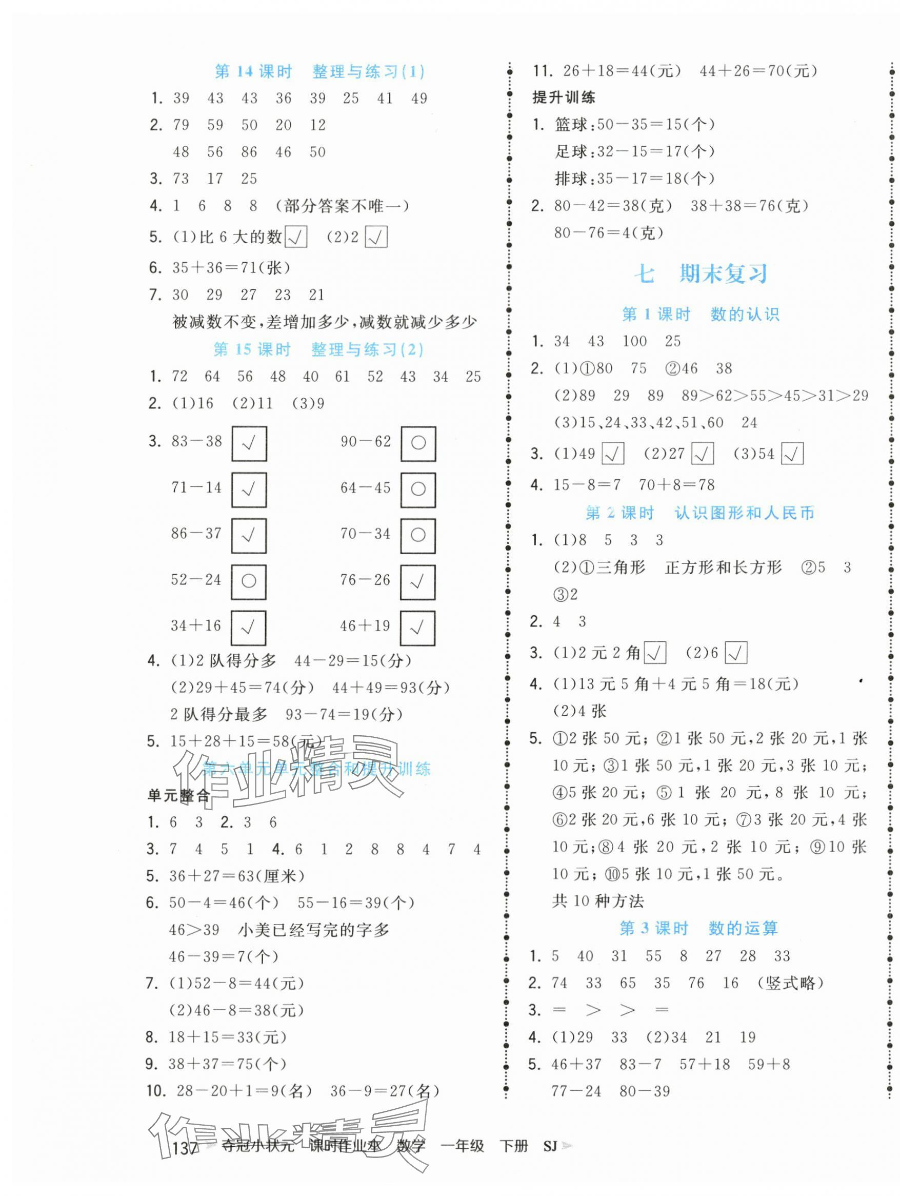 注:目前有些书本章节名称可能整理的还不是很完善,但都是按照顺序排列的,请同学们按照顺序仔细查找。练习册 2024年夺冠小状元课时作业本一年级数学下册苏教版 答案主要是用来给同学们做完题方便对答案用的,请勿直接抄袭。